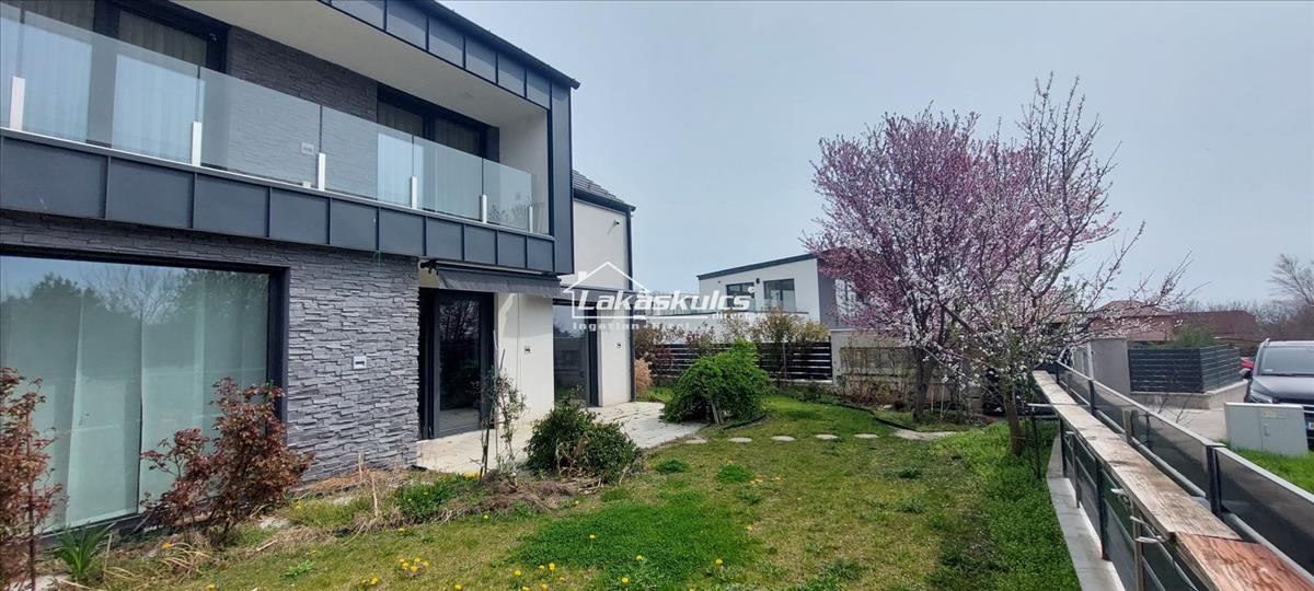 A 129 nm -es belső térben minden családtag megtalálja a helyét: a 40 nm -es földszinti közösségi tér mellett 4 hálószoba és két fürdő gondoskodik a kényelemről. a csendes, parkosított kert ideális pihenésre, a 18 nm -es terasz pedig elektromos napernyővel ellátott, így válik tökéletes helyszínné a kinti ebédekhez, vacsorákhoz.