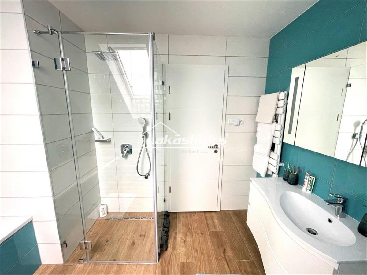 Szeretne minden reggel a Balaton fenséges látványára ébredni, mert itt ez adott, már a földszintről is. a nagy teraszról a panoráma ugyanolyan gyönyörködtető mint a nappaliból és a konyha, étkezőből. a berendezés modern, letisztult, minőségi. a földszinten még egy hálószoba és fürdőszoba a lakórész kiegészitője. Az emelet lakórészei: 3 hálószoba, melyből kettő balatoni, egy pedig tájpanorámás és egy fürdőszoba található.