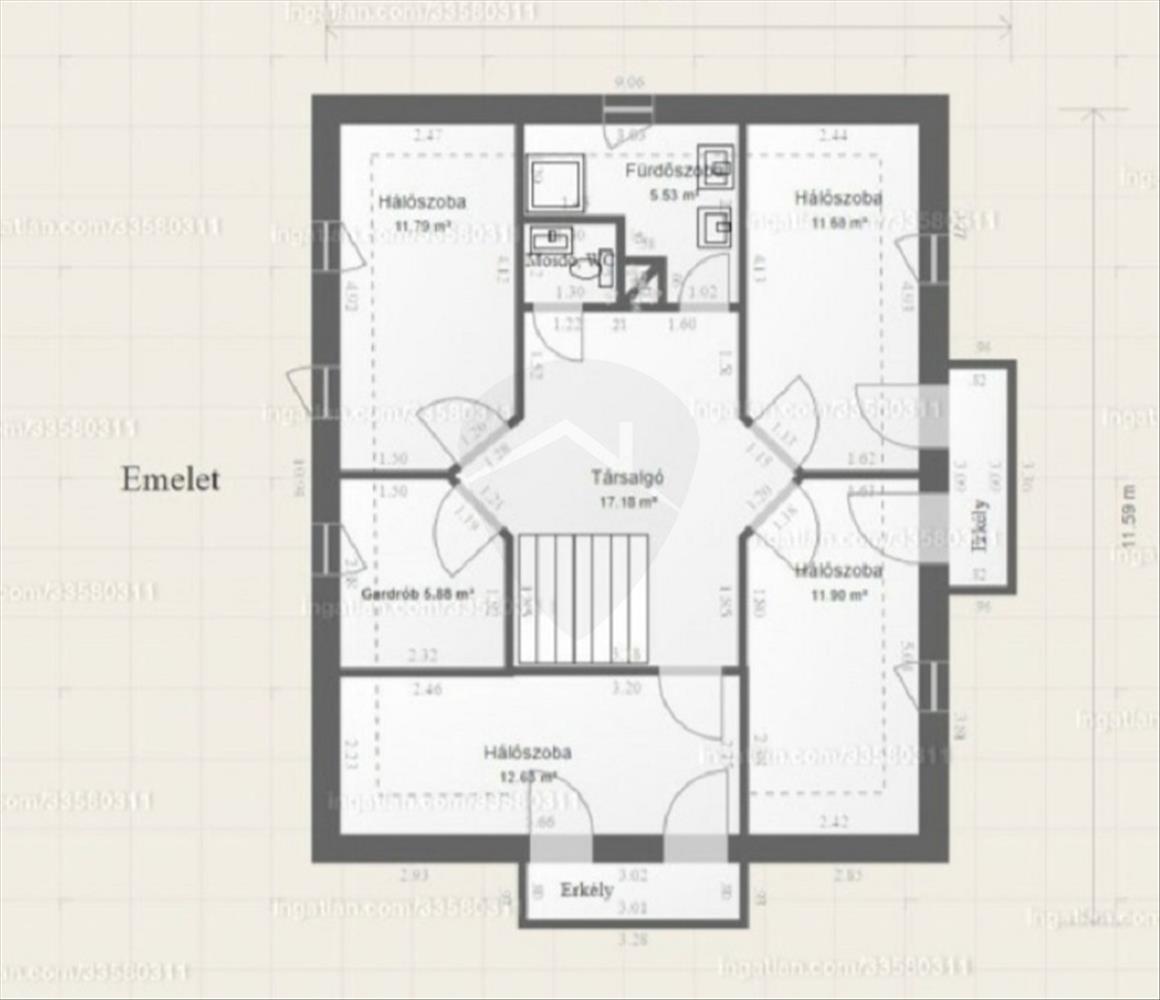 Az ingatlan alapterülete 2 szinten, összesen 159, 26 m2, míg a gondozott telek mérete 648 m2.
