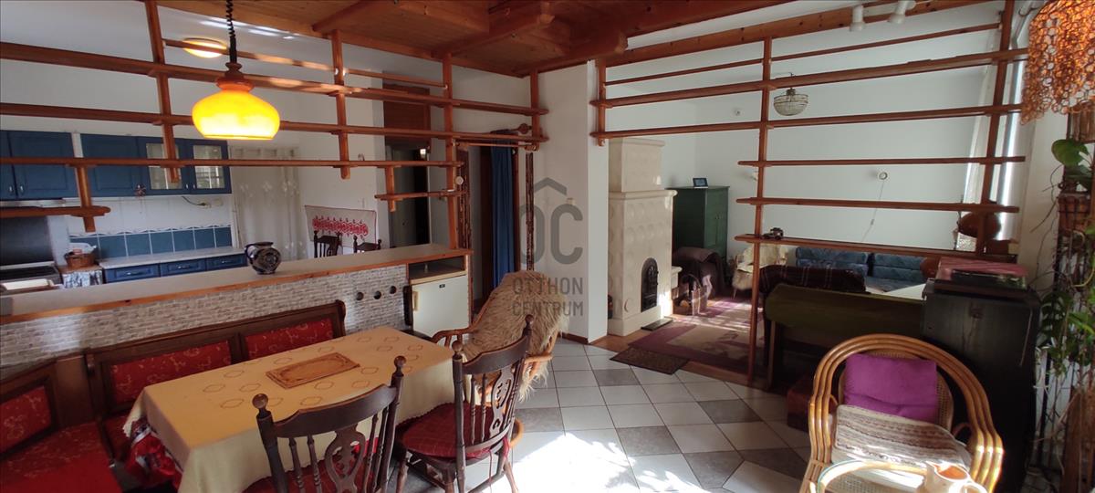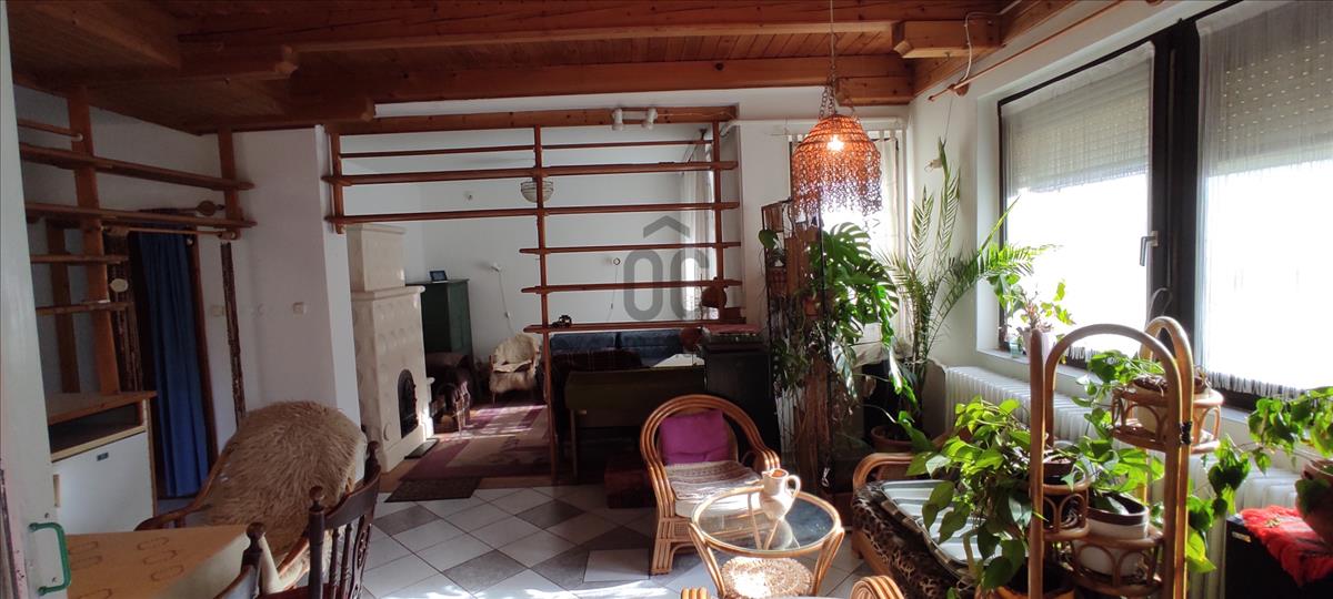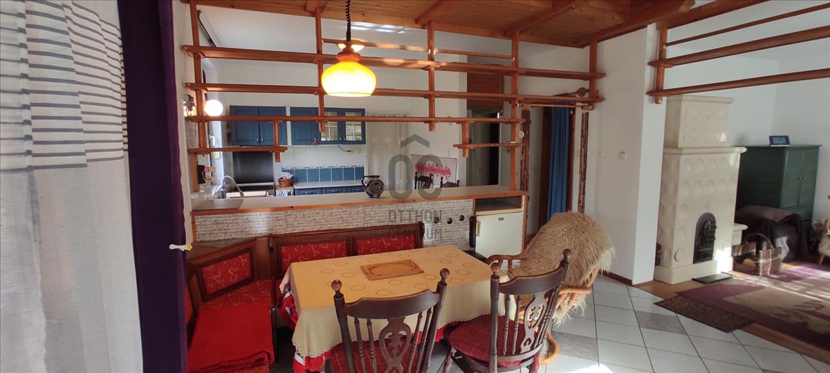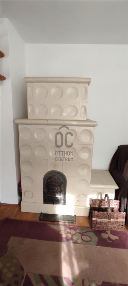 A nappali közepén nagyon szép cserépkályha van beépítve, mely az egész szintet be tudja fűteni.