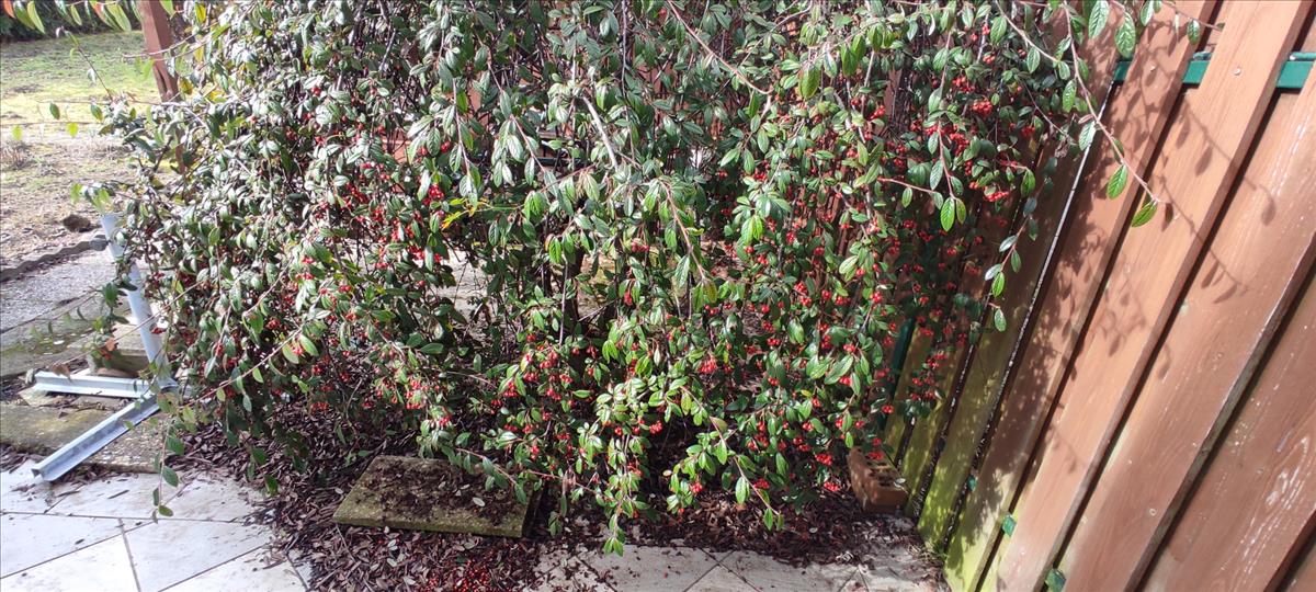 A kényelmes méretű kertben több bőtermő gyümölcsfa ill. Szőlő található, a szerszámoknak kis tároló van kiépítve.