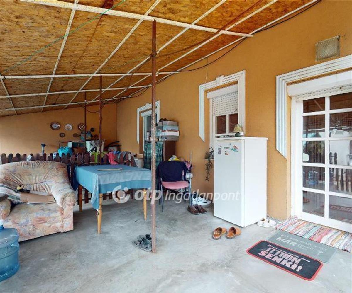 Az 1997-ban B30-as Porotherm téglából épült ingatlan egy 1526 nm-es telken helyezkedik el. Az ingatlan félig alápincézett, ahol a kazánház és egy zöldséges pince is helyet kapott. Az élület földszintjén található egy teljes értékű szoba, egy nagy nappali, társalgó, konyha + étkező + spájz, valamint fürdőszoba külön wc-vel. a lakóteret 2 külön bejáraton-, és a pincén keresztül is megközelíthető. Ezen a szinten az étkezőből nyílik egy nagy tágas terasz, amely rengeteg lehetőséget rejt magában.