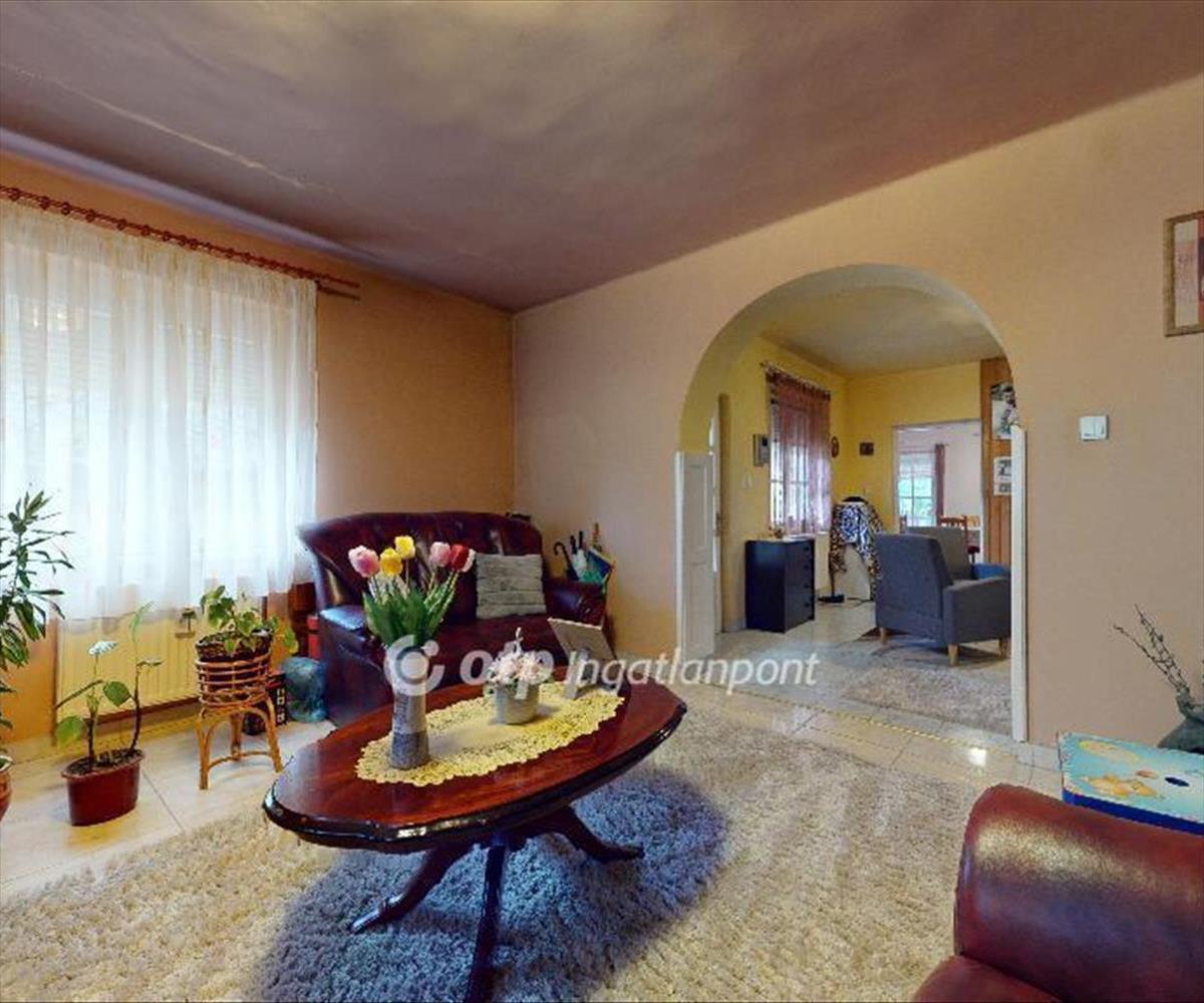 Az 1997-ban B30-as Porotherm téglából épült ingatlan egy 1526 nm-es telken helyezkedik el. Az ingatlan félig alápincézett, ahol a kazánház és egy zöldséges pince is helyet kapott. Az élület földszintjén található egy teljes értékű szoba, egy nagy nappali, társalgó, konyha + étkező + spájz, valamint fürdőszoba külön wc-vel. a lakóteret 2 külön bejáraton-, és a pincén keresztül is megközelíthető. Ezen a szinten az étkezőből nyílik egy nagy tágas terasz, amely rengeteg lehetőséget rejt magában.