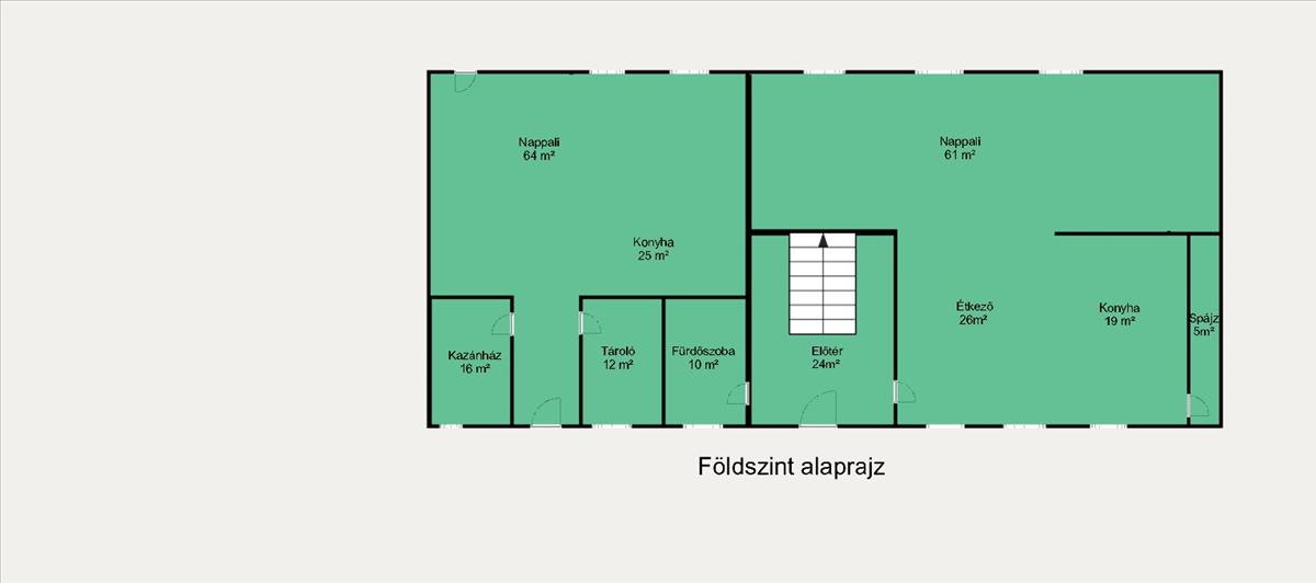 Belépve a főbejáraton, az előtérben találjuk magunkat, innen nyílik a fürdőszoba és az étkező illetve a falépcső az emeletre.