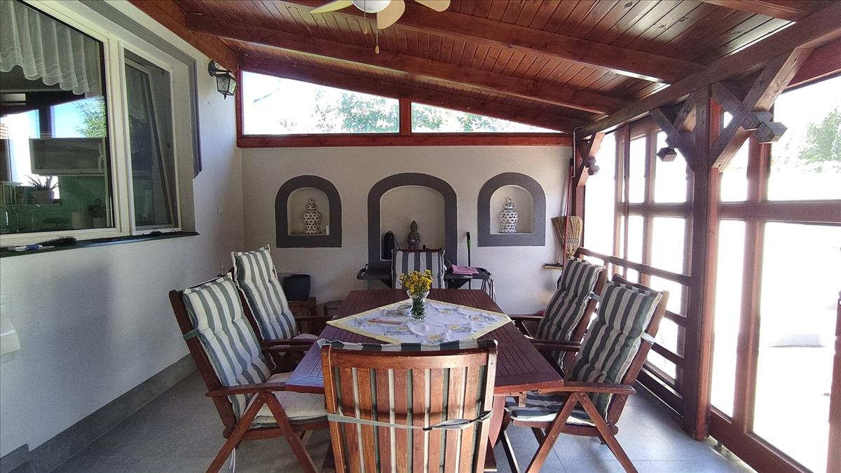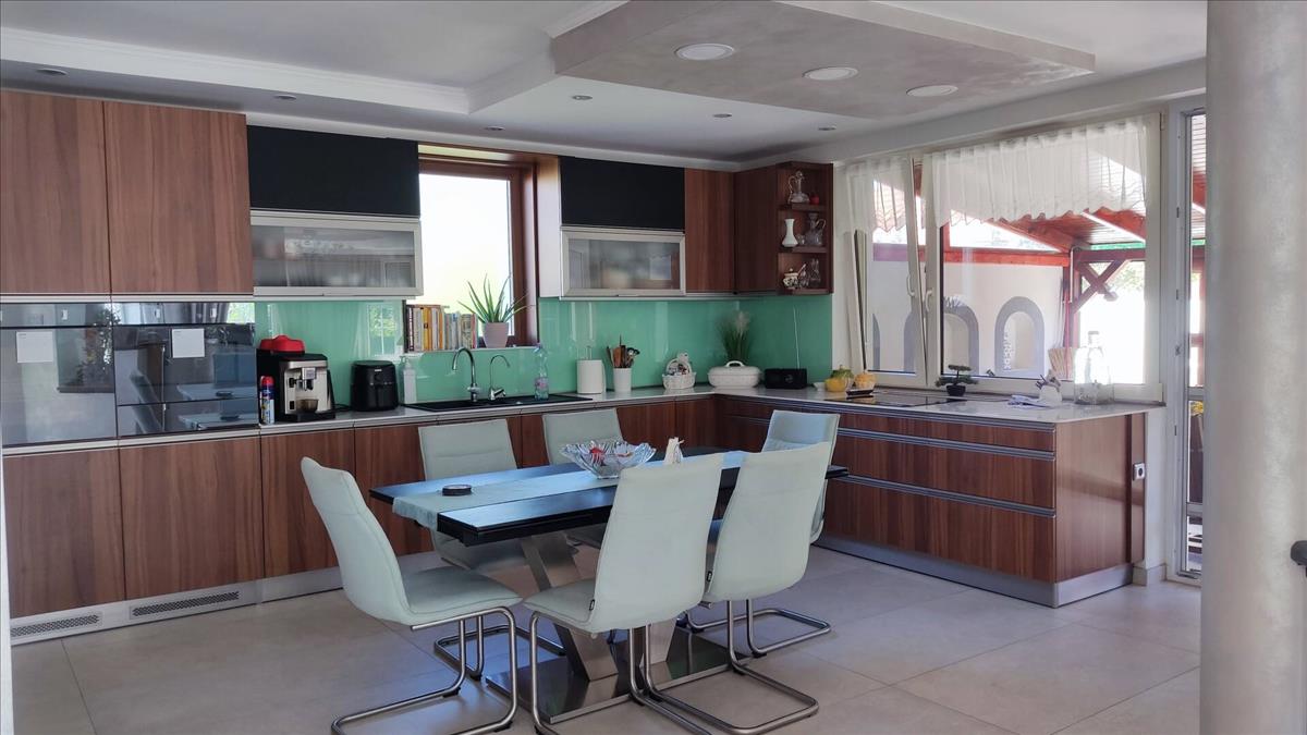 • a konyhához csatlakozik egy 20 m2-es fedett, üvegezett terasz üvegezett tolóajtóval a kerthez: tökéletes családi és baráti összejövetelekhez!