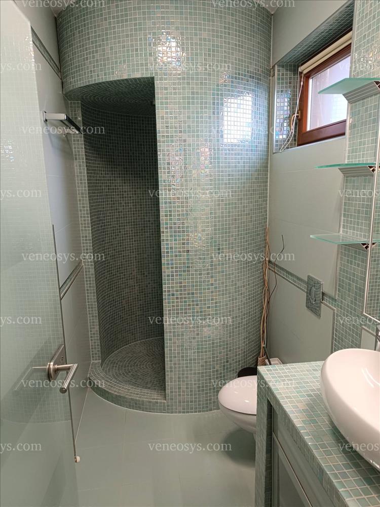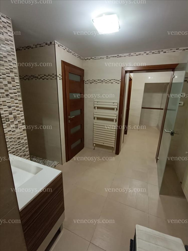 A szobák és a közlekedők falai magasfényű, prémium melegburkolattal borítottak.