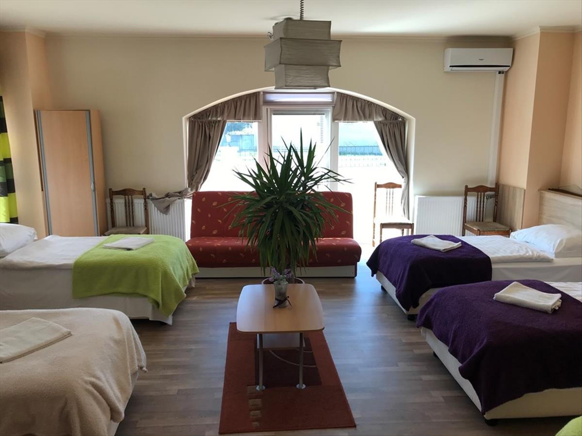 A panzió 5 db 2 ágyas, 3 db 3 ágyas, 1 db 4 ágyas és 1 db 5 ágyas szobákkal felszerelt. (Saját fürdőszoba – WC-vel)
