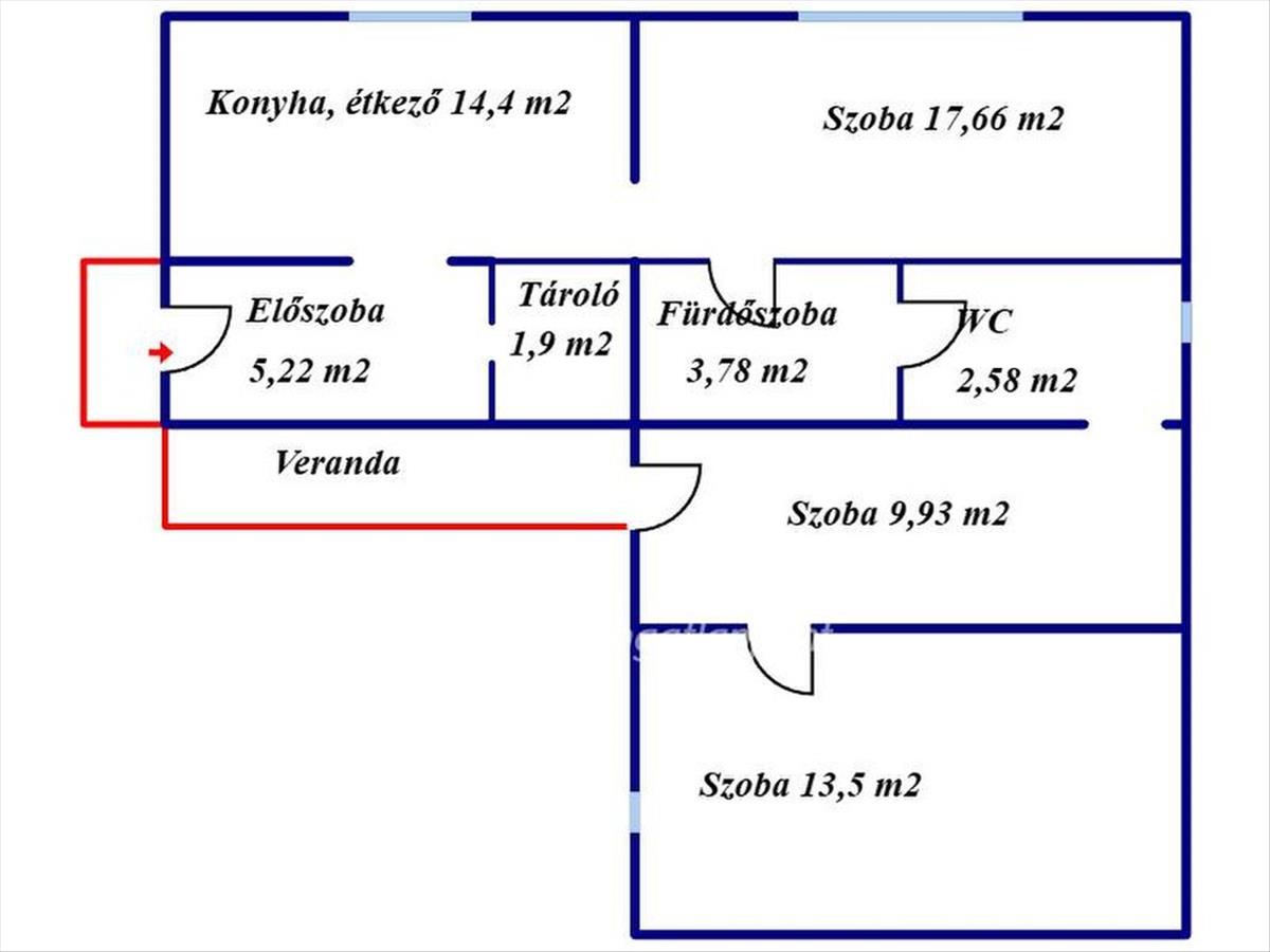 A belső tér elosztása praktikus, egy világos előszobából, konyhából, fürdőszoba, WC-ből és három különálló szobából áll. a helyiségek közül két szoba azonnal költözhető állapotban van, míg a harmadik szoba jelenleg befejezésre vár, így az új tulajdonos saját igényei és ízlése szerint alakíthatja ki benne a hálószobát, gyerekszobát vagy akár egy tágas gardróbot. Az otthon melegéről gázkonvektorok gondoskodnak, de a nappaliban található, hangulatos cserépkályha alternatív és meghitt fűtési lehetőséget is biztosít a téli hónapokban. a hátsó 2 szobában a fűtést ki kell alakítani és be kell fejezni a wc helyiség felújítását is.