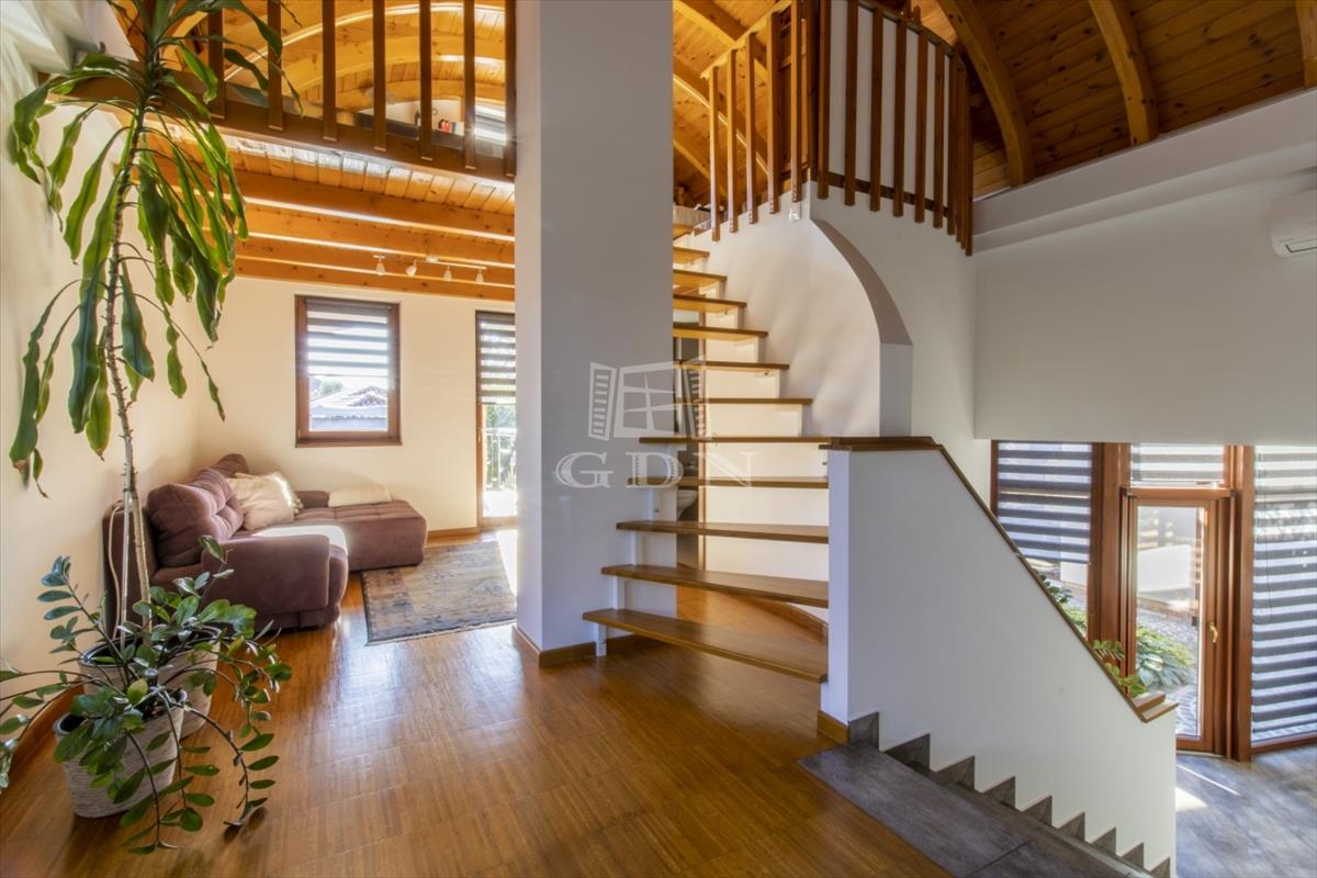 Az ház 2016-ban épült a legjobb minőségű anyagok felhasználásával. Rendelkezik kamerás kaputelefonnal, könyvtár galériával, átriummal ahová bazalt kockás járdán juthatunk el vagy éppen az étkező nyitható üvegajtaján.