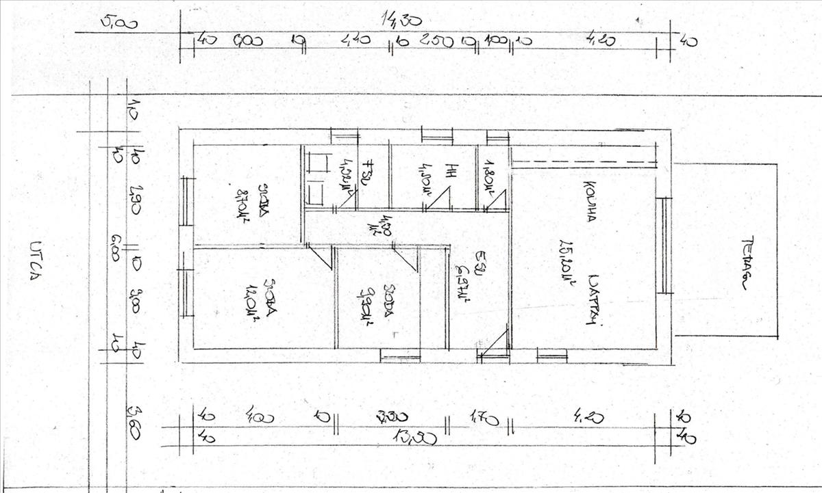 - Előtér, nappali-konyha-étkező, kamra, közlekedő, 3 szoba, kádas fürdőszoba, háztartási helyiség/zuhanyzós fürdő + 12nm terasz.