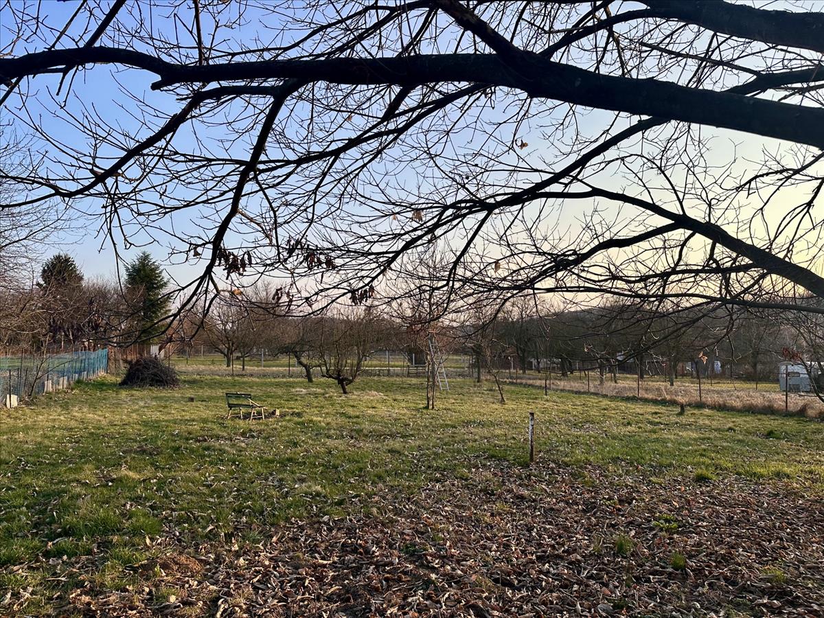 Tágas telek, gyümölcsfákkal: