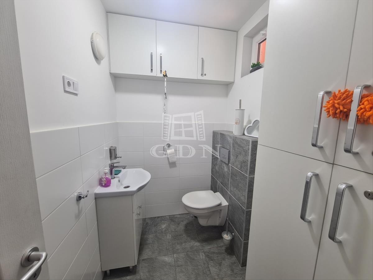 A bejárati ajtón belépve tárul elénk egy tágas konyha étkezővel, valamint kialakításra került egy kisebb társalgó rész is. a konyha két oldalán helyezkedik el a ház két nagyobb egysége, melynek stílusos berendezései azonnal megnyeri a tekintetet. Az ingatlanban megtalálható még egy kisebb szoba, továbbá kialakításra kerül 2 különálló wc egy nagyobb fürdőszoba + wc, illetve egy beépíthető szekrény melyben a mosókonyha kap helyet.
