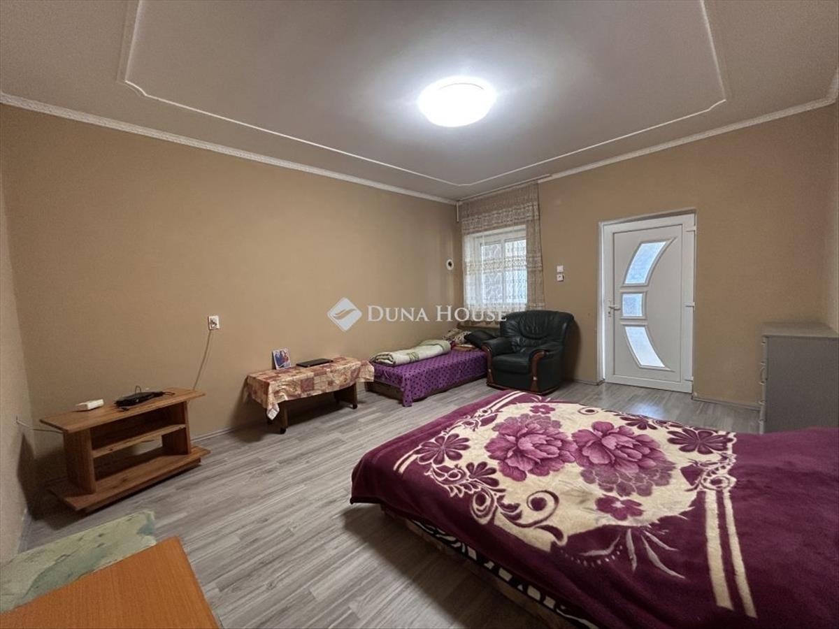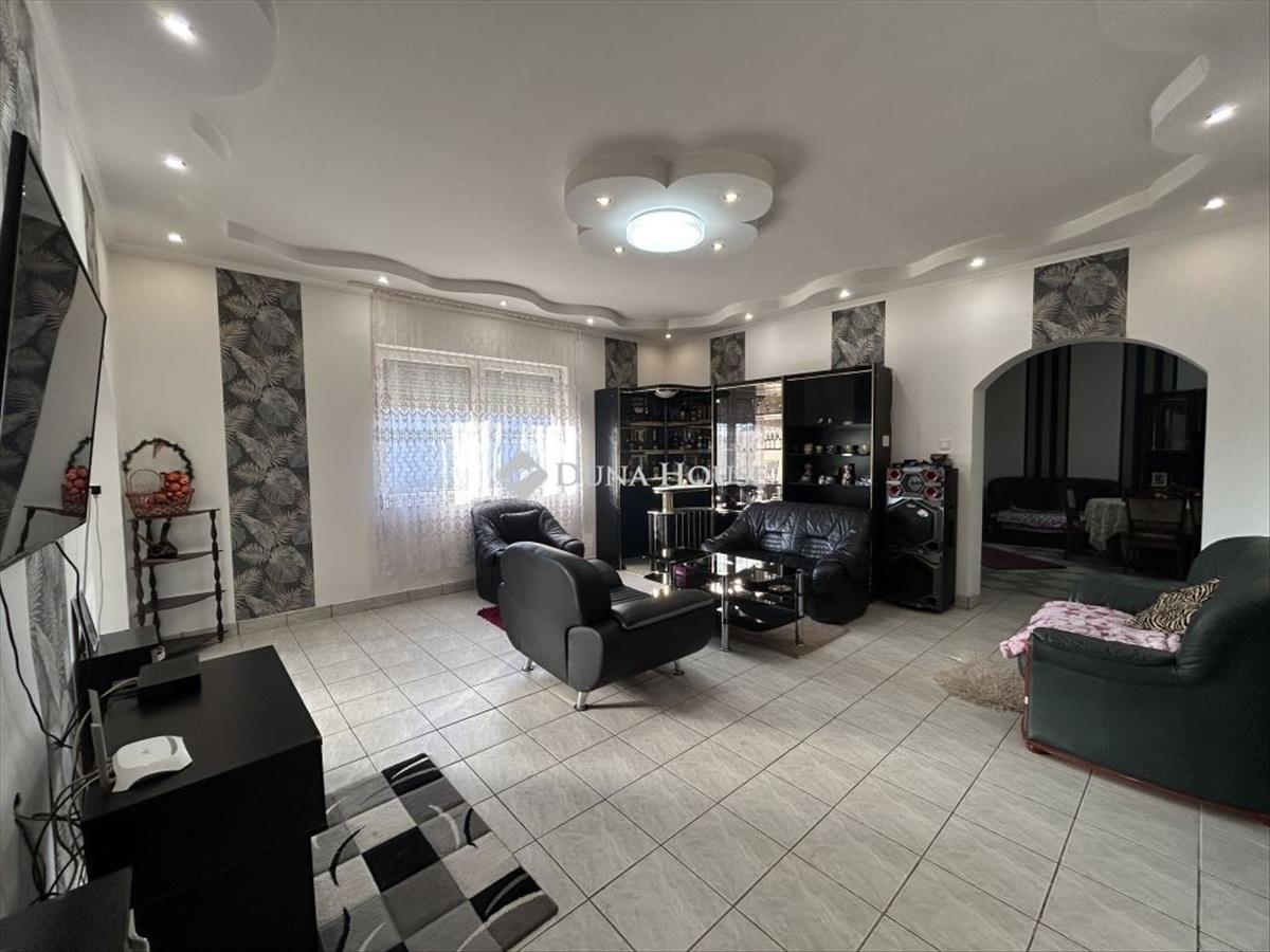 Eladó lakóövezeti környezetben, kiváló elhelyezkedéssel egy nagy alapterületű családi ház, hatalmas telekkel. a település egyik jól megközelíthető, mégis nyugodt részén, 3462 m²-es telken kínáljuk megvételre ezt a közel 200 m²-es, betonalapra épült családi házat, amely méretének és elrendezésének köszönhetően ideális választás lehet nagycsaládosok, többgenerációs együttélésben gondolkodók vagy akár vállalkozásban is gondolkodó vevők számára. Az épület falazata vegyes, de döntően tégla, a belső terek pedig jól átgondoltan, élhető módon kapcsolódnak egymáshoz. a házban két hálószoba, egy tágas nappali, étkező, konyha, fürdőszoba, külön wc, előszoba és közlekedő kapott helyet. a lakótérhez nyárikonyha és kamra is kapcsolódik, valamint egy 28 m²-es pince, amely kiválóan alkalmas tárolásra vagy akár hobbicélokra is. a házhoz hozzáépítésre került egy külön bejárattal rendelkező rész, amelyben wc helyiség, vízkiállásokkal ellátott, szabadon hasznosítható helyiség, valamint külső tároló található. Ez a rész számos lehetőséget rejt magában: alkalmas lehet műhelynek, vállalkozásnak, vendégrésznek vagy akár egy leválasztható lakrész kialakítására is. Az ingatlan teljes közművel ellátott: víz, villany, gáz és csatorna a házban rendelkezésre áll. Az elektromos hálózat 32a + 16a kapacitással bír, a melegvíz-ellátást villanybojler biztosítja. a fűtés jelenleg kályhákkal megoldott, ugyanakkor a gáz be van vezetve az ingatlanba, a gázcsonk kiállások rendelkezésre állnak, így a fűtés korszerűsítése egyszerűen megoldható. Az elmúlt két évben több felújítás is történt az ingatlanban. Megújult a fürdőszoba, új bojler és új sarokkád került beépítésre, valamint korszerű hidegburkolatok kerültek lerakásra. a nyílászárók műanyag, hő- és hangszigetelt ablakokra lettek cserélve, a szobákban és az előszobában új padlóburkolat készült, a belső terek hangulatát pedig beépített, ledes spot világítás teszi modernné. a konyhabútor gépek nélkül a vételár részét képezi. a kert rendkívül tágas, fúrt kúttal és több gazdasági épülettel, így akár gazdálkodásra, állattartásra, kertészkedésre vagy egyszerűen csak egy nagy, zöld élettér kialakítására is alkalmas. Az ingatlan elhelyezkedése kifejezetten előnyös: boltok, pékség, óvoda, iskola, patika és dohánybolt mindössze pár perc sétára található, így a mindennapi élethez szükséges szolgáltatások kivétel nélkül gyorsan elérhetők. Ez az ingatlan stabil alapot kínál, amely már átesett több fontos felújításon, ugyanakkor további korszerűsítéssel könnyedén a következő tulajdonos igényeire szabható. További információért és megtekintésért várom hívását. FIX 3% lakáshitelre megvehető