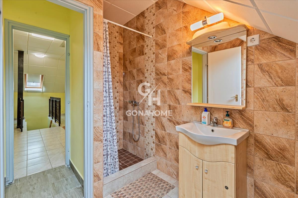 - Az ingatlan 2 szintből áll, az előszobából külön bejáraton keresztül megközelíthető a beépített tetőtér, valamint a földszinti lakrész is.