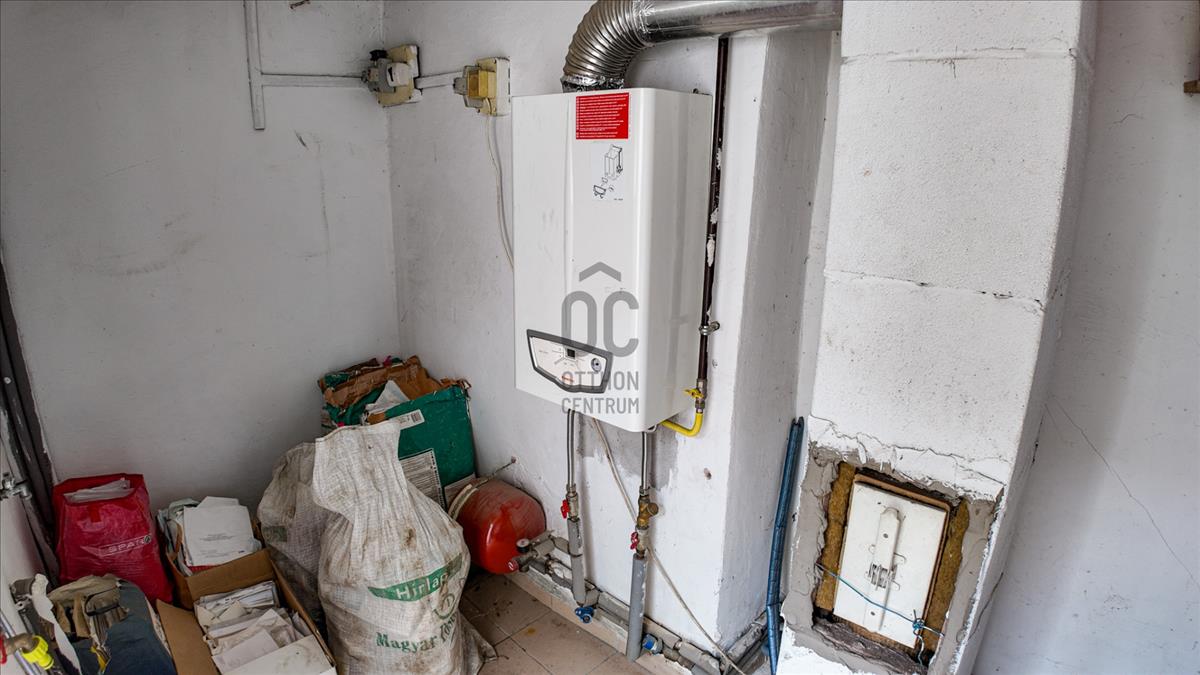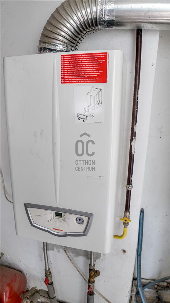 A fűtésről gázcirkó kazán gondoskodik, radiátoros hőleadással, a vízmelegítést villanybojler végzi.