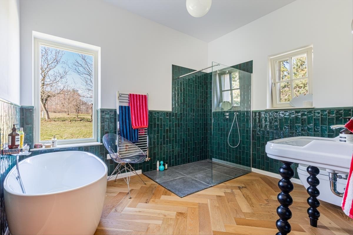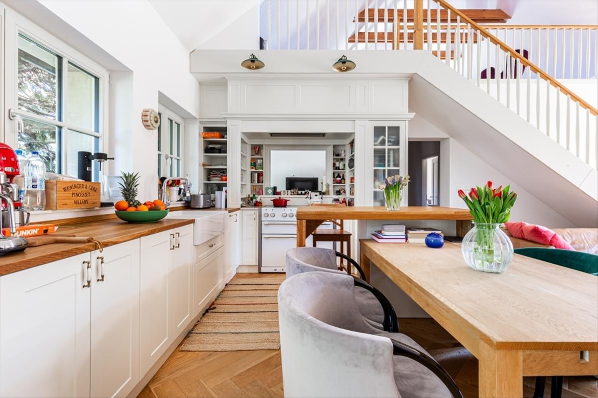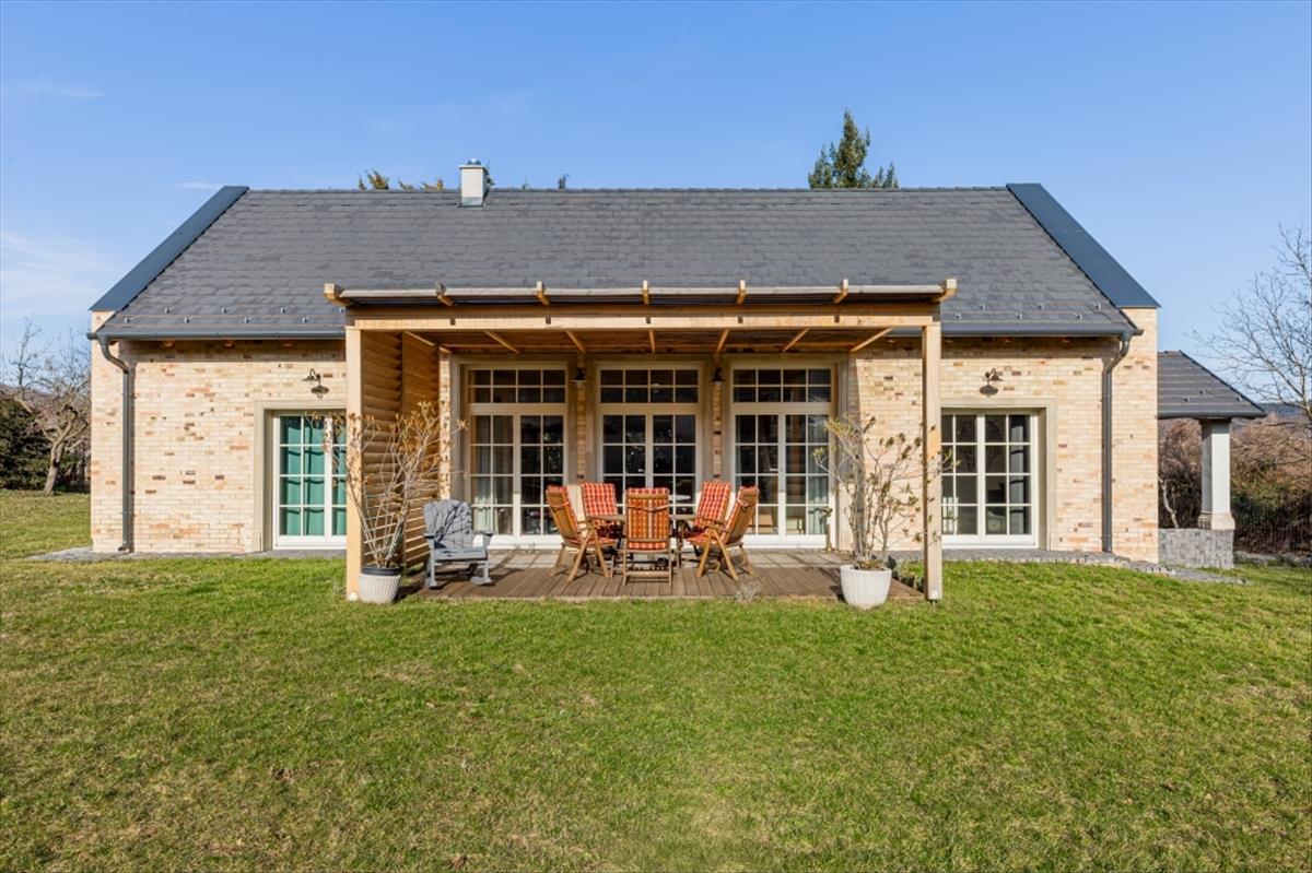 Rendkívül magas minőségű kivitelezéssel épült: 60 cm vastag falak, 3 rétegű fa nyílászárók az Otti Manufactura által ide gyártott keretezéssel, párkányokkal, Terrán tető, 18mm vastag tölgy burkolat. a konyha éke az egyedileg gyártott konyhabútor.