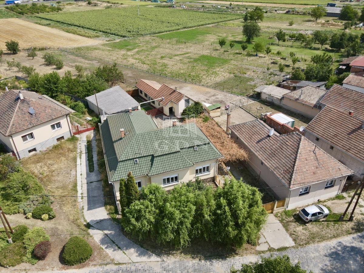 A tágas udvaron termő gyümölcsfák kaptak helyet, és a vételár részét képezi egy 2057 m²-es, belterületi telek 4/16-od része is (514 m²), amely a hátsó kaputól, földúton 50 méterre érhető el.