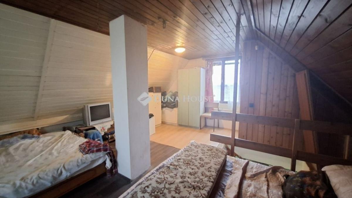 A nappaliból egy kb. 10 Fokos, viszonylag meredek falépcsőn keresztül jutunk a beépített tetőtérbe. a tetőtér alapterülete ugyanakkora, mint a földszinti élettéré, a tető meredek szögéből adódóan kb. 20 m2 190 cm feletti belmagasságú, így azt teljes értékű szobaként lehet használni annak, aki nem riad el egy kis lépcsőzéstől.
