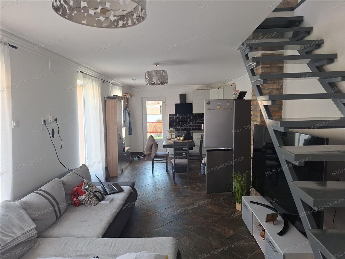 A kisebb, kétszintes lakrész 35m2-es alapterületű. Az alsó szinten egy amerikai konyhás nappali, a felső szinten egy szoba, közlekedő és egy fürdőszoba+WC lett kialakítva. a fűtést gázkazán, a hűtést klíma biztosítja. Az épület teljesen fel lett újítva. Az ingatlan befektetés céjára is kiváló, jelenleg két különálló lakrészre van osztva, de a tetőtér beépítésével és a melléképületek átépítésével akár 4 lakórész is kialakítható. Amennyiben felkeltettem érdeklődését, kérem hívjon! FIX 3% lakáshitelre megvehető
