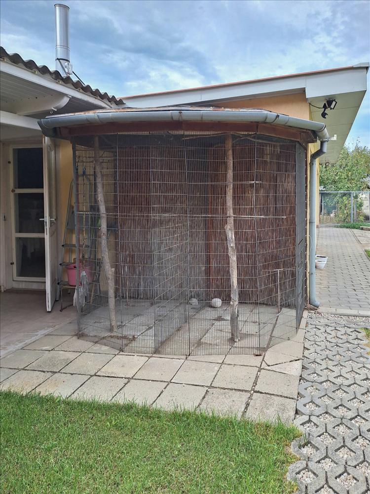 Az ingatlanhoz egy kétállású, elektromos kapuval ellátott garázs tartozik, valamint az udvaron állattartásra alkalmas melléképületek, istállók és tárolók találhatók. a telek végében egy akácerdő biztosítja a fűtéshez szükséges tüzelőanyagot. a kényelemről automata öntözőrendszer, riasztó- és kamerarendszer, valamint háromféle fűtési lehetőség (gázkazán, vegyes tüzelés, hűtő-fűtő klíma) gondoskodik.