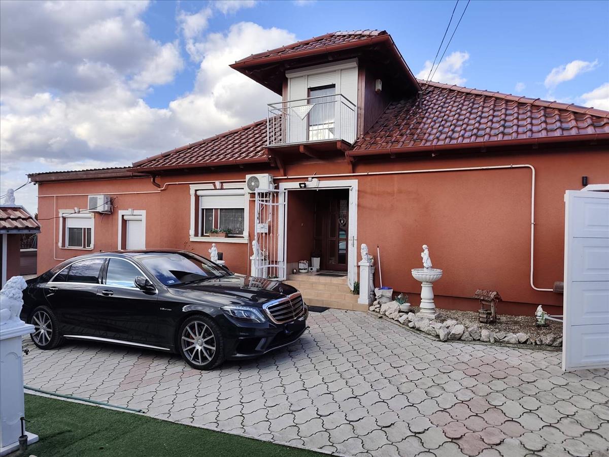 In Bács-Kiskun County, in a quiet, well-kept district of Baja, we offer for sale a fully renovated family house with a converted attic, providing 145 + 26 m² of usable floor area and complemented by a separate courtyard room. The property is two-storey and features 10–15 cm of thermal insulation. It is in excellent condition and can be taken into possession at short notice by agreement. On the ground floor there is a spacious, bright living room, two bedrooms, an entrance hall, a kitchen-diner and a bathroom; in addition, a room with a separate entrance from the yard offers further options for family members or guests. In the attic there are two smaller rooms (half-rooms), a walk-in closet, a landing and a balcony, ensuring a comfortable layout for the residents. Heating is provided by convector heaters, while heating/cooling air-conditioning units in every room ensure a pleasant temperature; the windows and exterior doors are made of thermally insulated wood. Security is ensured by a camera system and an alarm; the cellar offers additional storage; the 806 m² plot is accessible from two streets and equipped with electric gates. Parking is available in the closed garage and on two covered parking spaces, accommodating up to four cars; the covered cooking area and the cellar are ideal for gatherings. There is also a jacuzzi in the yard, allowing the owners to enjoy the full wellness experience at home. The location is excellent: a school, kindergarten, shop, pharmacy, church, sports field and lottery shop are within easy reach, and the main road is quickly accessible—all in a quiet, family-friendly environment. The house combines comfort, style and security, making it a perfect choice for those seeking a modern, well-equipped, spacious and welcoming home. FIX 3% lakáshitelre megvehető