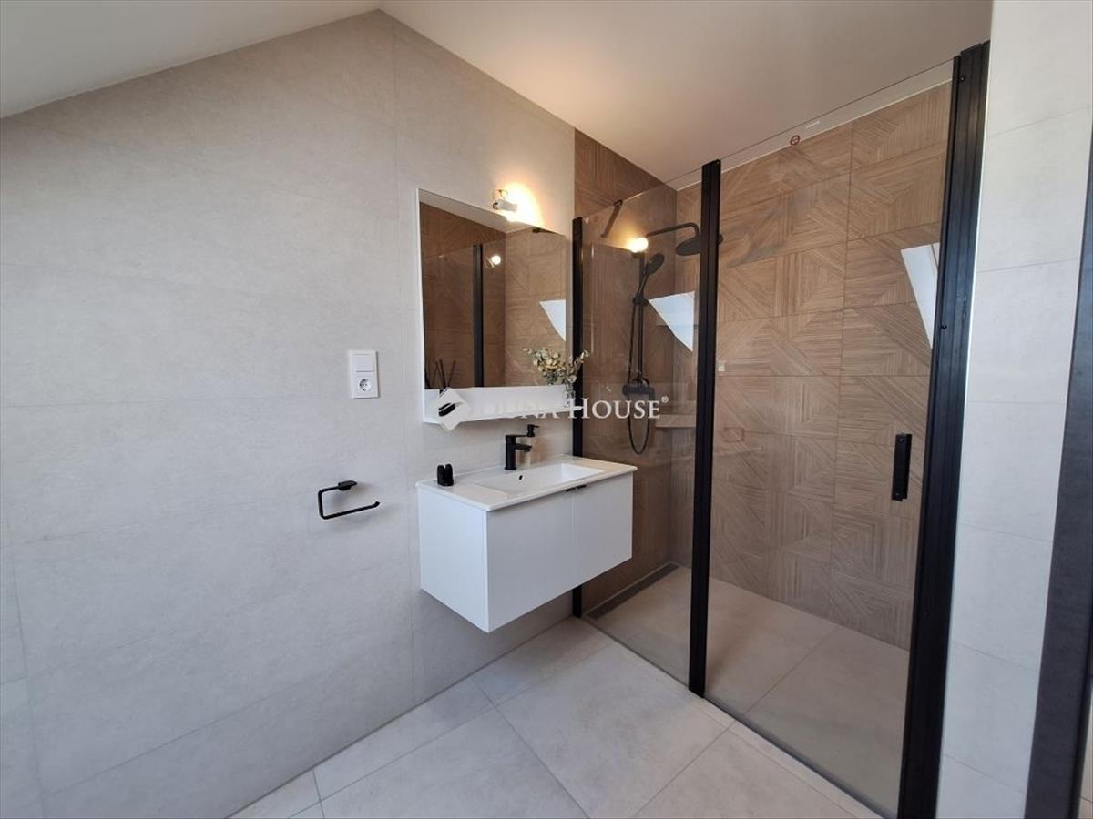 A házban magas színvonalú műszaki megoldások, mint a hőszivattyús padlófűtés, az elektromos redőnnyel felszerelt műanyag nyílászárók, a márványból készült külső-belső ablakpárkányok, az alumínium ereszcsatornák, és a tetőablakokon elhelyezett külső-belső árnyékolók szolgálják a lakók kényelmét. Az energiatakarékos megoldásokat kiegészíti 2 db 3, 5 Kw-os klímaberendezés és a 3x25 amperes villamos vezetékek.