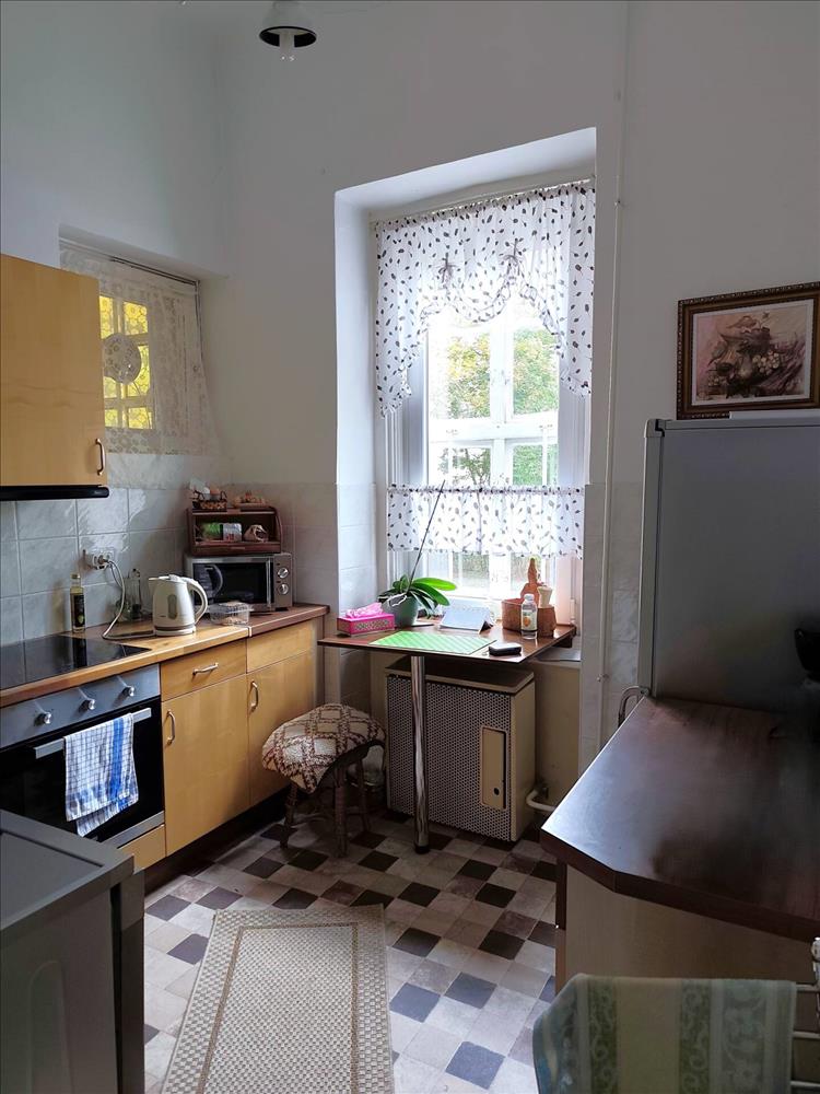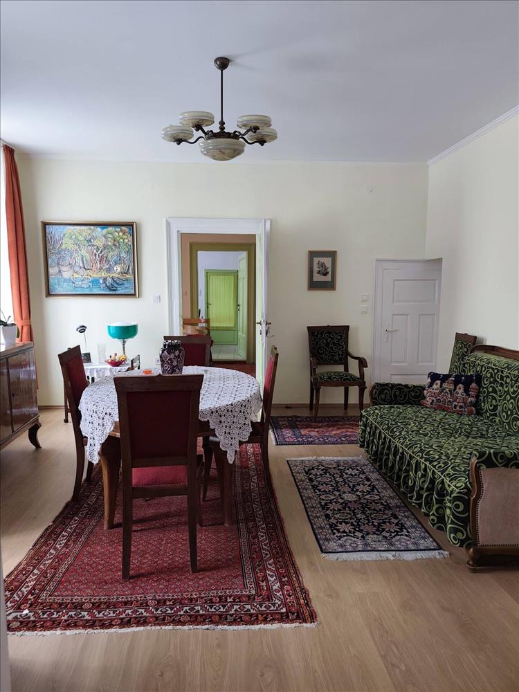The building is approximately 100 years old, built in the 1920s, with mixed masonry (brick and clay), partially renovated, and the western wing is insulated. The rooms are separated by double-leaf civic doors, with some rooms illuminated by antique bronze chandeliers. In the 27. 5 M² curved, south-facing living room and the adjacent 23 m² dining room, sunlight can be enjoyed throughout the day.