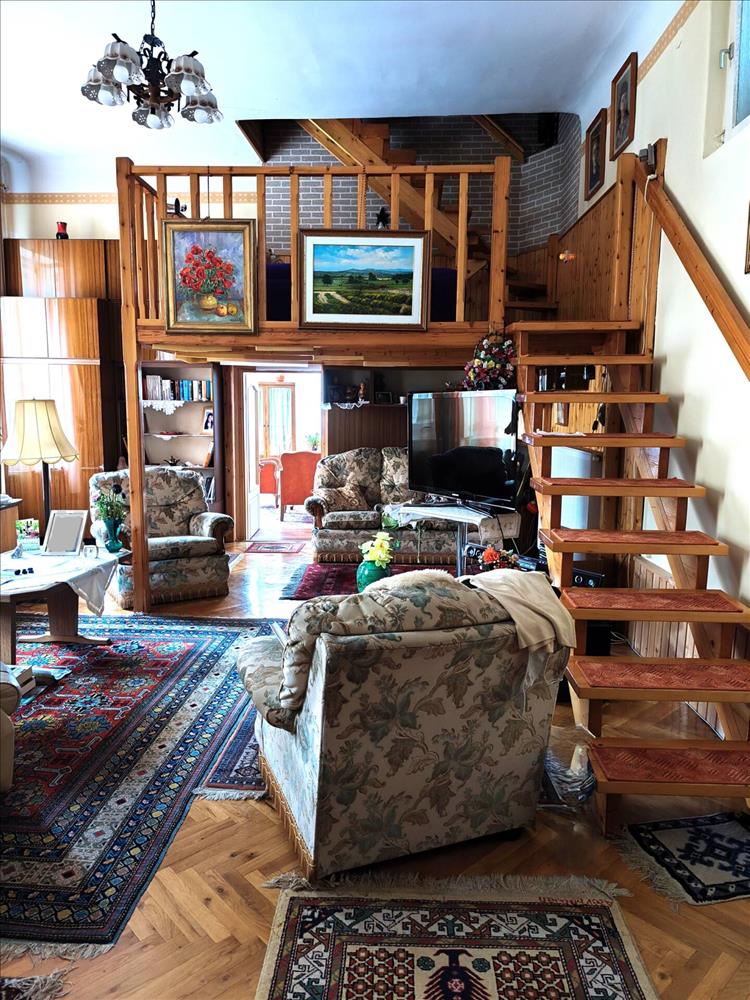 The property is double comfort, with 3 kitchens and 3 bathrooms. Heating and comfort are provided by central heating with gas boiler (radiators), tiled stoves, gas convectors, and air conditioning units. The ceiling height ranges from 2. 6–3. 6 M, the building is fully basemented, the attic is built-in, and the property includes storage rooms, attic space, and cellar. In the yard, there is a separate ca. 15 M² small house.