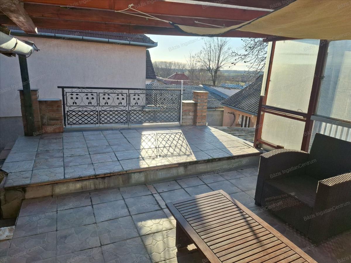 A házhoz egy részben fedett, 20 m²-es terasz is tartozik, amely kiválóan alkalmas pihenésre vagy családi, baráti összejövetelekre. Az udvarban két garázs található, az egyikhez pince is kapcsolódik, továbbá egy különálló kamra is rendelkezésre áll, amely praktikus tárolási lehetőséget kínál.