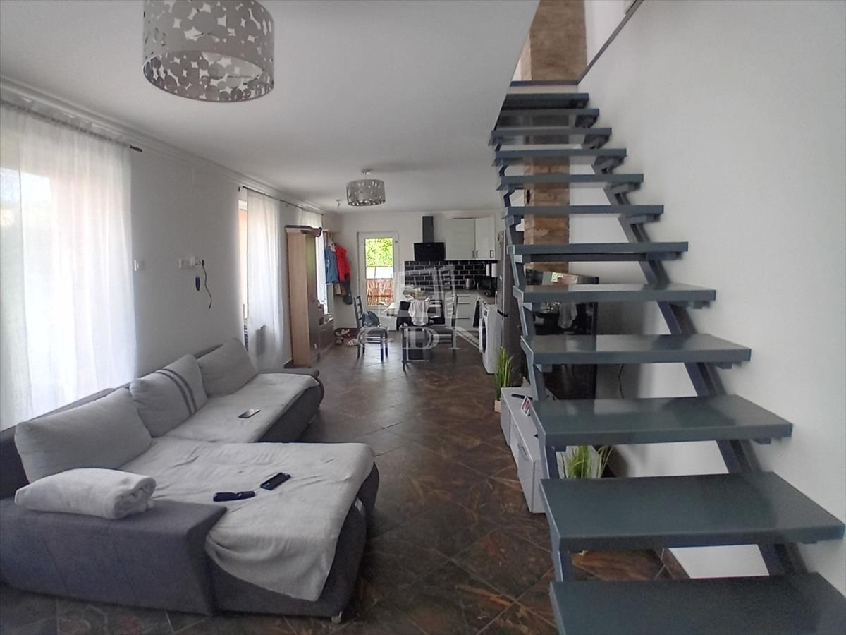 A kisebbik: a tégla falak szigeteltek, az ablakok műanyagok. Az alsó szinten tágas konyha +ebédlő +nappali. Az emeleten egy hálószoba, nappali és fürdőszoba.
