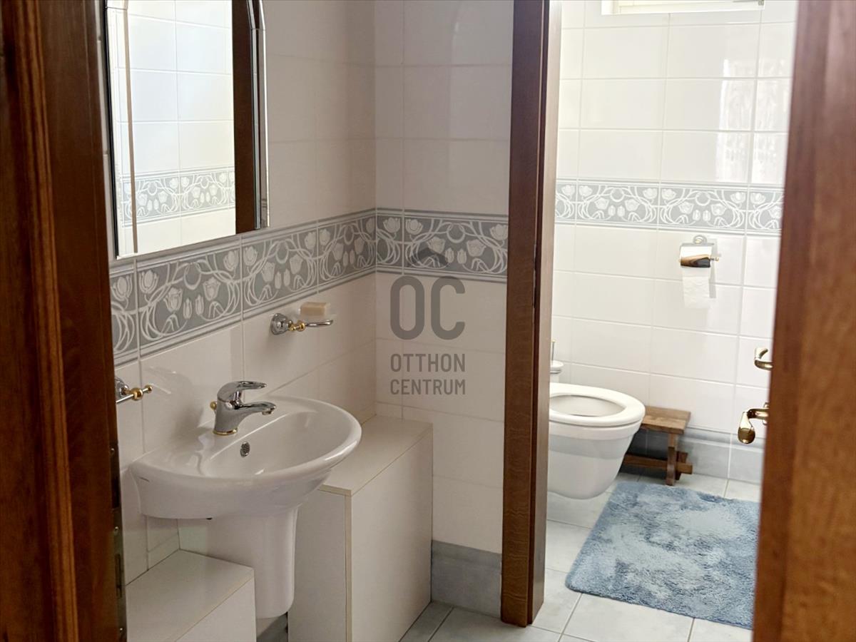 három külön nyíló hálószoba, intarziás parkettával burkolt nappali, étkező, teraszkapcsolatos konyha, bútorozott kamra, mosókonyha kényelmes padlásfeljáróval, valamint egy tágas fürdőszoba (zuhanyzóval, masszázsfunkciós sarokkáddal, WC-vel és bidével), továbbá egy külön WC–kézmosó kapott helyet.