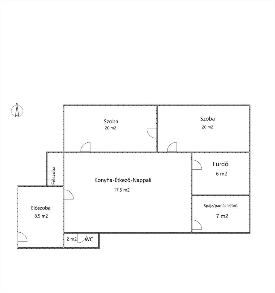 Az ingatlanban kialakításra került 2 szoba, konyha-étkező-nappali helyiség, félszoba, fürdő, wc, spájz.