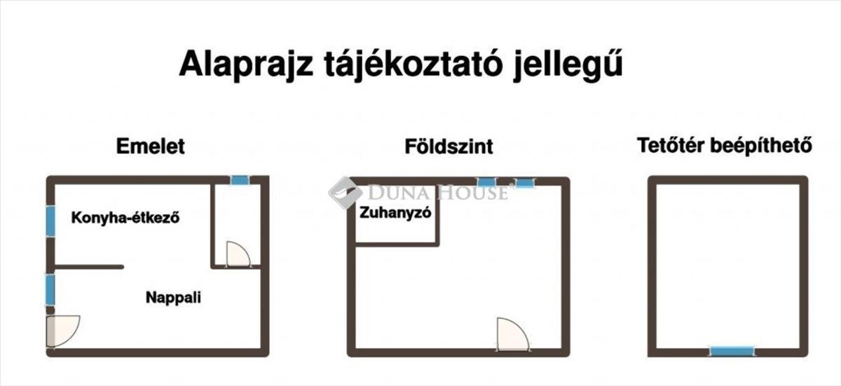 Emeleten található konyha- nappali egyben, és egy fürdőszoba vécével.