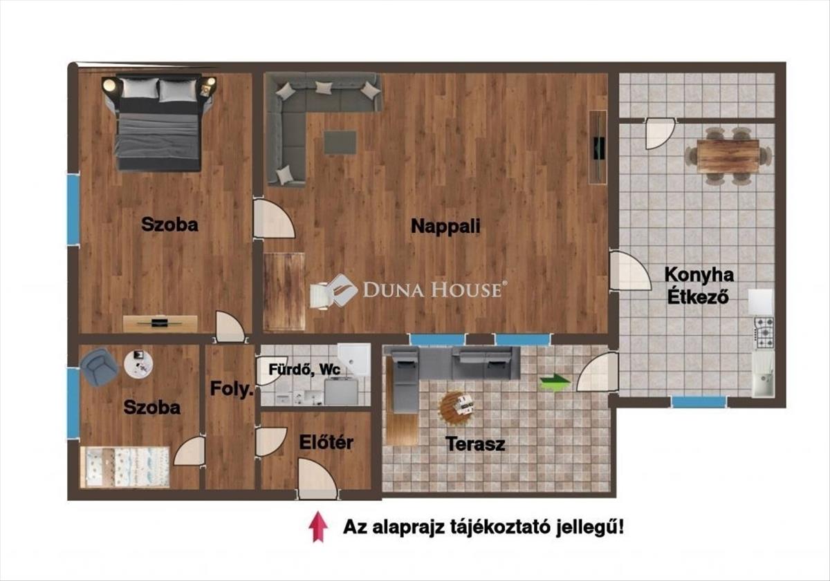 3 szoba, konyha-étkező, fürdő WC-vel