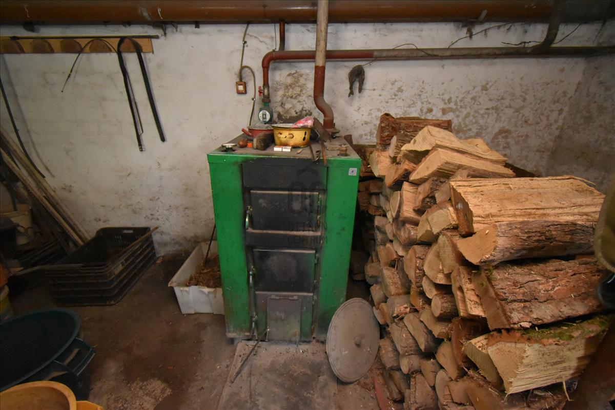 A ház melegét vegyestüzelésű kazán biztosítja radiátoros hőleadással, amely gazdaságos és megbízható megoldást kínál.