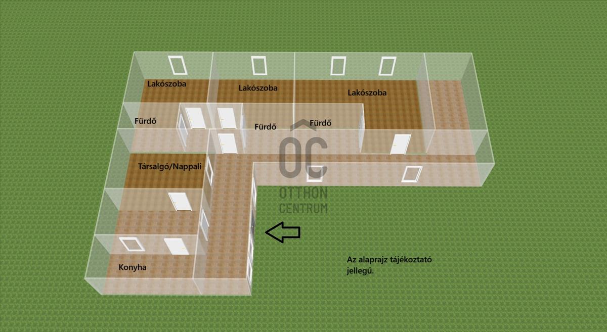Ebben a környezetben vált eladóvá ez az apartmanház, mely kisebb átalakítása, modernizálása után kiválóan hasznosítható, kiadható. a terület hatalmas és gyönyörű környezetben van, távol a város zajától. Három szoba, mindhárom szobához külön fürdőszoba, egy nagy közösségi tér, előtér, konyha alkotja. Fűtése cserépkályhával megoldott. Nyílászárói jó állapotú fa szerkezetűek. a szobák, közösségi terek burkolata, külső fal, tető, megkímélt állapotúak.