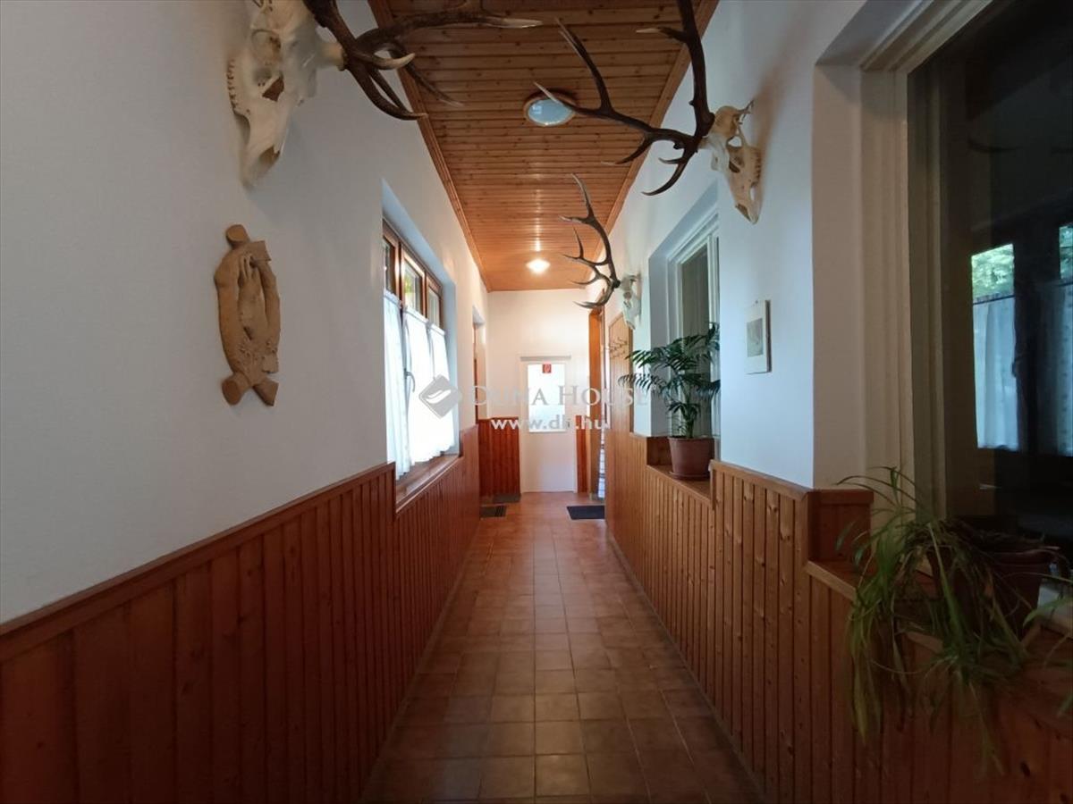 A zárt, igényesen kialakított és karbantartott udvarban két nagy épület található. Az udvar jobb oldalán az L alakú épületbe egy fedett teraszon keresztül jutunk be, ahonnan mindkét irányban egy-egy közlekedőn keresztül jutunk el a helyiségekhez. a bejárattal szembe egy előszobába jutunk ahonnan egy nagy világos nappaliba nyithatunk, amit étkezőnek és társalkodónak is használnak. Az előszobából balra egy tágas, világos konyhába léphetünk ahonnan egy nagy éléskamra és egy nagy fürdőszoba nyílik. a bejárattól balra egy közlekedőn keresztül a tűzifa tárolóba jutunk, ahonnan a padlásfeljáró is nyílik. a bejárattól jobbra a hosszú közlekedő végében külön előtéren keresztül, 3 nagy, világos szobába jutunk amelyek saját, nagy fürdőszobával rendelkeznek. Minden bútorzat, falburkolás fából készült, erdész-vadász jelképekkel, relikviákkal. Minden helyiség fűtését falba épített cserépkályhákkal oldották meg, a meleg vizet villanybojlerek biztosítják.