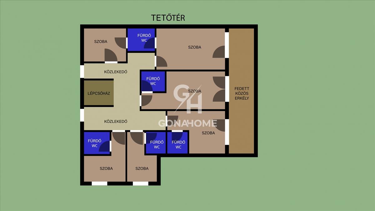 - tetőtér: több, külön fürdőszobás szoba, elsősorban vendégfogadásra kialakítva