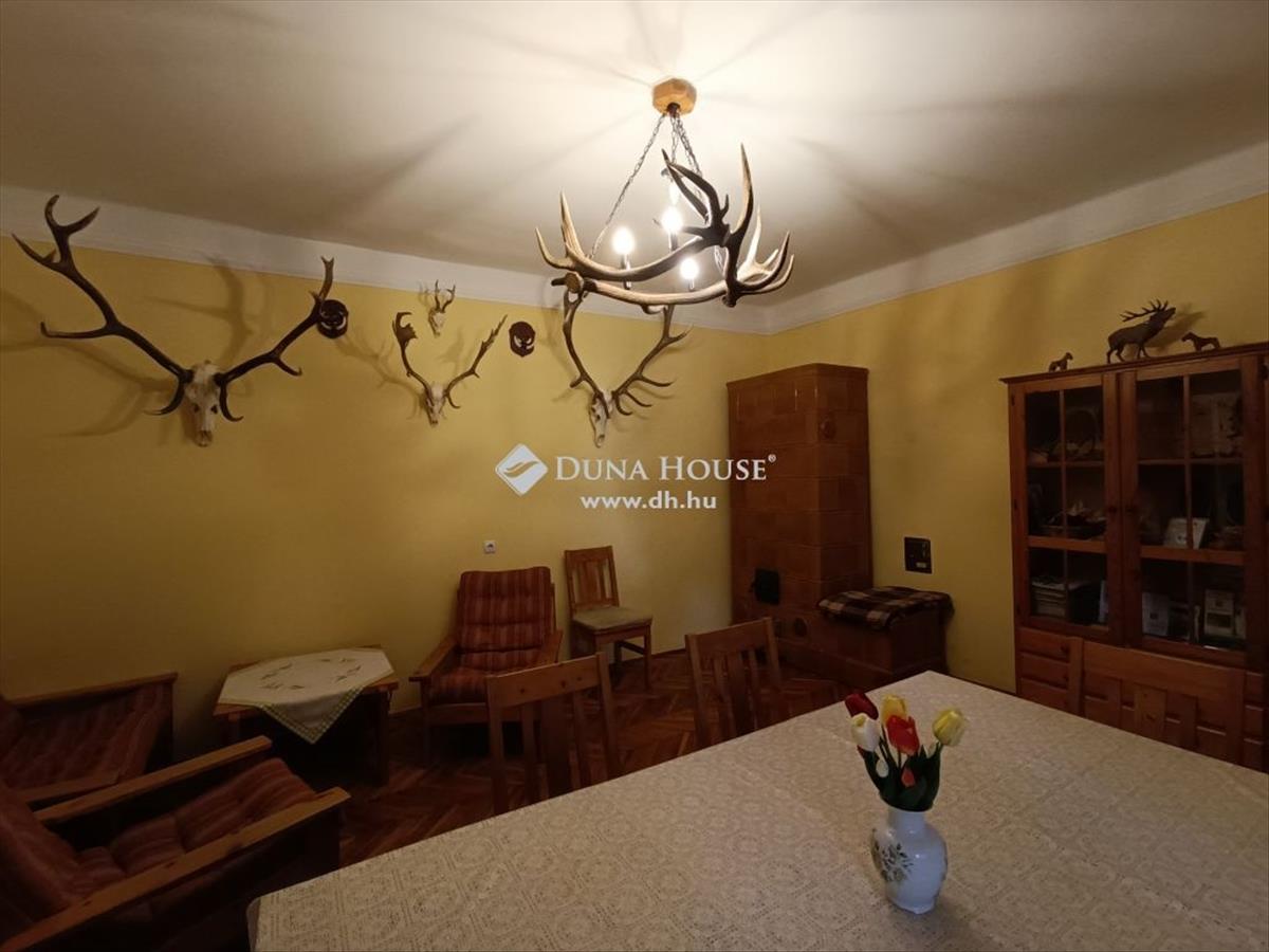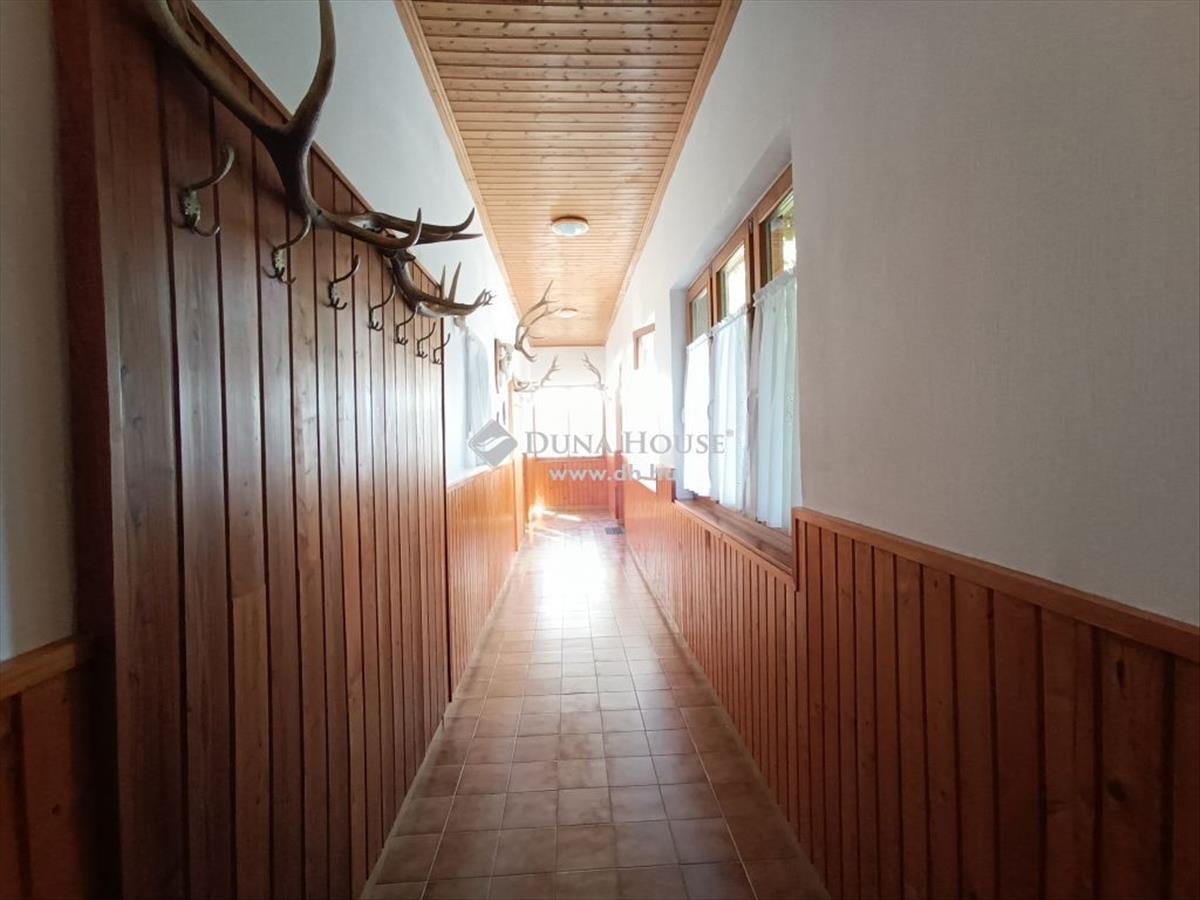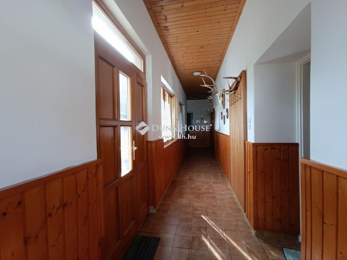 A zárt, igényesen kialakított és karbantartott udvarban két nagy épület található. Az udvar jobb oldalán az L alakú épületbe egy fedett teraszon keresztül jutunk be, ahonnan mindkét irányban egy-egy közlekedőn keresztül jutunk el a helyiségekhez. a bejárattal szembe egy előszobába jutunk ahonnan egy nagy világos nappaliba nyithatunk, amit étkezőnek és társalkodónak is használnak. Az előszobából balra egy tágas, világos konyhába léphetünk ahonnan egy nagy éléskamra és egy nagy fürdőszoba nyílik. a bejárattól balra egy közlekedőn keresztül a tűzifa tárolóba jutunk, ahonnan a padlásfeljáró is nyílik. a bejárattól jobbra a hosszú közlekedő végében külön előtéren keresztül, 3 nagy, világos szobába jutunk amelyek saját, nagy fürdőszobával rendelkeznek. Minden bútorzat, falburkolás fából készült, erdész-vadász jelképekkel, relikviákkal. Minden helyiség fűtését falba épített cserépkályhákkal oldották meg, a meleg vizet villanybojlerek biztosítják. Gáz nincs a közelben, csatorna sincs, a szennyvíz saját szennyvíz-tárolóba kerül. Vezetékes víz, villany az épületben van.
