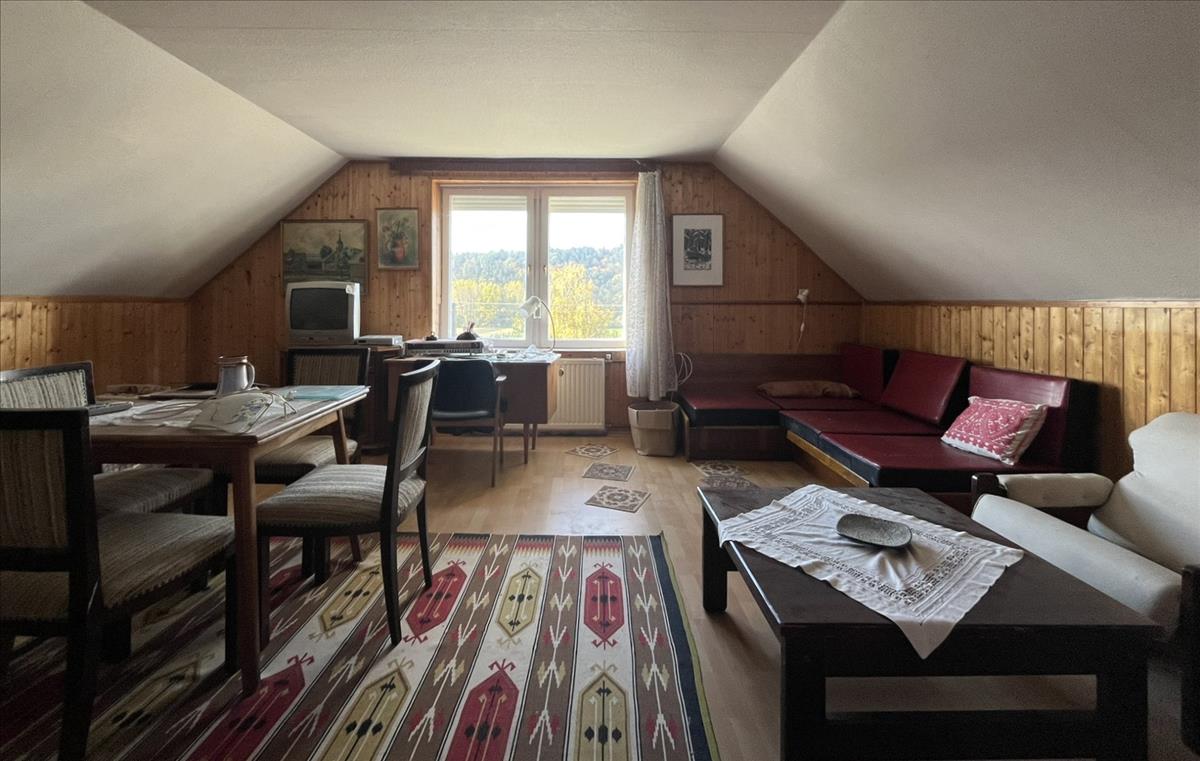 Annak, aki vendégházat vagy turistaházat álmodik: a két szint, a külön terek és az erdők közelsége miatt ideális.