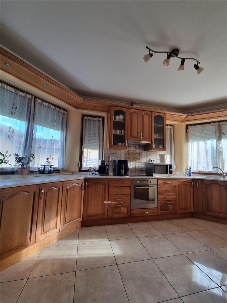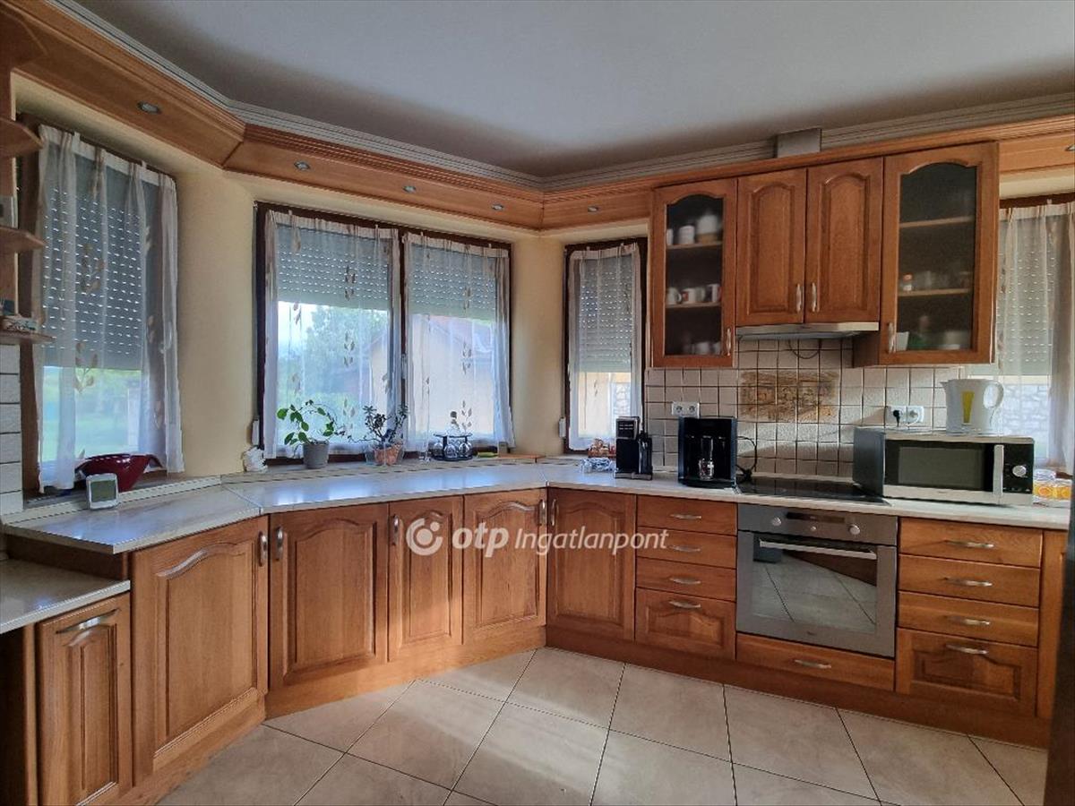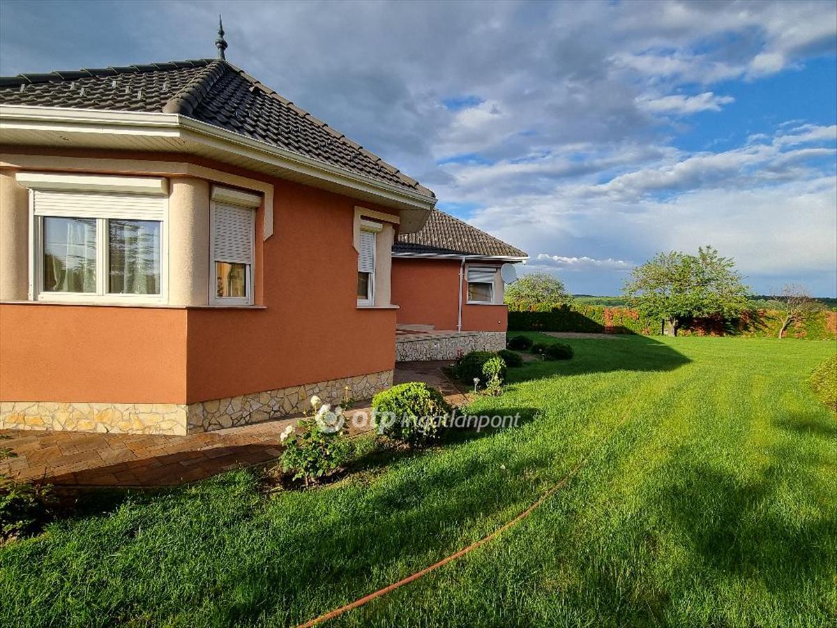 Eladásra kínálok Bakonyszentlászlón, Győr-Moson-Sopron vármegyében, a Pannonhalmi járásban, csendes környezetben, erdőhöz közeli település részen, bakonyi erdőre néző panorámáva, remek elrendezésű, tágas belső terekkel rendelkező, igazán otthonos, 258, 7 m2-es családi házat, 821 m2-es telken, amelyhez még egy ugyanekkora nyagyságú telek is csatlakozik. Bakonyszentlászló Zirc után a környék legnagyobb települése. a település turisztikailag népszerű, a Bakonyalja tájegység pápai és súri részegységei találkozásánál helyezkedik el, Pápától, Győrtől és Veszprémtől egyaránt 40-40 kilométer távolságra. a 2008-ban épült ingatlan, minőségi alapanyagokból, átgondoltan tervezve, kivitelezve épült. Elrendezés tekintetében áll: 4 szobából, egy amerikai konyhás nappaliból és étkezőből, kamrából, tágas előszobából, fürdőszobából és illemhelyiségből, gardróbból, valamint egy fedett teraszból /20m2/, duplagarázsból, a pincerészen szauna, szolárium és a kondiszoba, kamra, gardróbszoba, mosókonyha, kazánház található. a ház szobái laminált parkettássak, a többi helyiség kerámia burkolatú. Mindkét fürdőszoba kényelmes, nagyméretű, az egyikben jacuzzi és zuhanyzó, a másikban zuhanyzó került beépítésre. a fűtés két féle Buderus kazánnal is lehetséges / gázkazán, faelgázosító kazán/, és a hozzákapcsolódó 500l. -S puffertartállyal, a lakószinten padló és falfűtéssel, az alsó szinten radiátoros hőleadással. Az épületben hűtő-fűtő klíma is segíti a megfelelő hőmérséklet kialakítását. Az ingatlan mérete ellenére alacsony rezsi számlával rendelkezik. a víz tisztaságát a beépített víz szűrő-és lágyító rendszer garantálja. a természetes fa beltéri ajtók, a beépített fabútorok mellett a tágas konyhában a fakonyhabútor található. a duplagarázs padlófűtéssel rendelkezik, előtte fedett, térkővel borított kocsibeálló helyezkedik el két autó számára. a ház kiváló statikai és szerkezeti állapotú, 3-rétegő műanyag nyílászárók kívülről alumínium borítással, redőnyökkel, szúnyoghálóval ellátottak. Tágas, világos terek jellemzik. Udvara rendezett, körbekerített, részben füvesített, részben térkövezett, ahol egy tágas tárolóépület, fúrt kút található. a településen minden megtalálható, ami a hétköznapokban szükséges lehet, így orvosi rendelő, gyógyszertár, atm, bank, üzletek, könyvtár, állatorvos, óvoda, iskola, kultúrház, étterem, védőnő, masszőr, szépségszalon és még sorolhatnám. Az utca csendes, ám minden elérhető, bolt, buszmegálló a közelben. a környék csodálatos kirándulóhely, számtalan barlang, forrás, erdei tanösvény, kilátó, pincesor teszi felejthetetlenné az ide látogatók számára. Az otthonosan kialakított családiházat ajánlom mindazon vevők részére, akik egy szép, családias, nyugodt részen kívánnak élni, távol a város zajától, falun, nyugodt családias természetközeli környezetben keresnek már jelen formájában is modern, takarékos, kényelmes otthont családi háznak, amely remek elosztásának köszönhetően nagyobb családnak, vagy több generáció együttéléséhez is elegendő teret biztosít vagy akár üzleti szempontból is jó befektetés lehet. Az OTP Ingatlanpont teljes körű ügyintézéssel áll az eladók és a vevők rendelkezésére. a kínálatunkból választott ingatlan finanszírozásához kedvezményes hitelkonstrukciót kínálunk. Otthon Start Hitelprogram. Az adásvételi szerződés megkötéséhez igény szerint megbízható ügyvédi közreműködést biztosítunk, és segítséget nyújtunk az adásvételhez kapcsolódó ügyek intézéséhez is. Az ingatlanról készült alaprajz, illetve fényképfelvételek az Otp ingatlanpont szellemi tulajdonát képezik. Páratlan lehetőség! Hivjon és vásárolja meg álmai otthonát vagy szabadidő eltöltésére hétvégi házát! FIX 3% lakáshitelre megvehető