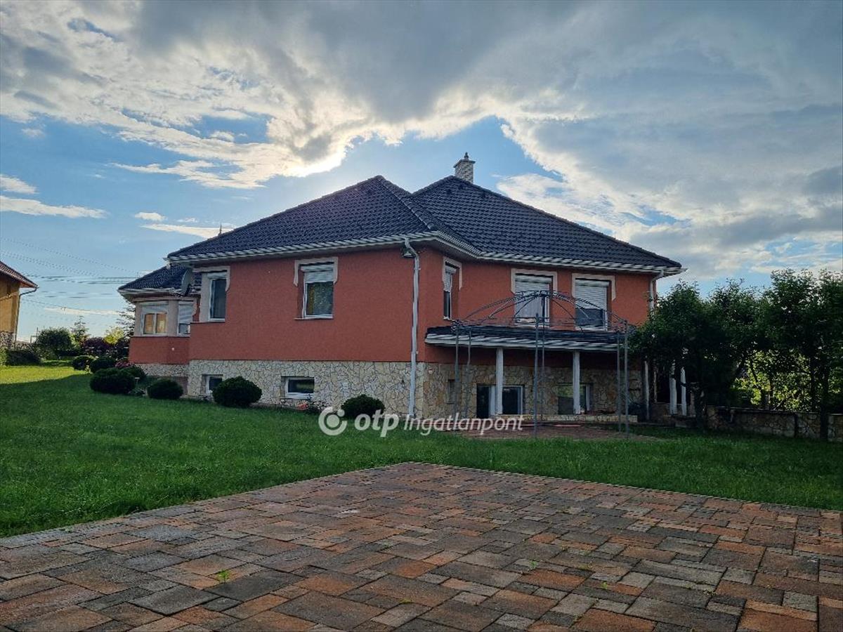 Eladásra kínálok Bakonyszentlászlón, Győr-Moson-Sopron vármegyében, a Pannonhalmi járásban, csendes környezetben, erdőhöz közeli település részen, bakonyi erdőre néző panorámáva, remek elrendezésű, tágas belső terekkel rendelkező, igazán otthonos, 258, 7 m2-es családi házat, 821 m2-es telken, amelyhez még egy ugyanekkora nyagyságú telek is csatlakozik. Bakonyszentlászló Zirc után a környék legnagyobb települése. a település turisztikailag népszerű, a Bakonyalja tájegység pápai és súri részegységei találkozásánál helyezkedik el, Pápától, Győrtől és Veszprémtől egyaránt 40-40 kilométer távolságra. a 2008-ban épült ingatlan, minőségi alapanyagokból, átgondoltan tervezve, kivitelezve épült. Elrendezés tekintetében áll: 4 szobából, egy amerikai konyhás nappaliból és étkezőből, kamrából, tágas előszobából, fürdőszobából és illemhelyiségből, gardróbból, valamint egy fedett teraszból /20m2/, duplagarázsból, a pincerészen szauna, szolárium és a kondiszoba, kamra, gardróbszoba, mosókonyha, kazánház található. a ház szobái laminált parkettássak, a többi helyiség kerámia burkolatú. Mindkét fürdőszoba kényelmes, nagyméretű, az egyikben jacuzzi és zuhanyzó, a másikban zuhanyzó került beépítésre. a fűtés két féle Buderus kazánnal is lehetséges / gázkazán, faelgázosító kazán/, és a hozzákapcsolódó 500l. -S puffertartállyal, a lakószinten padló és falfűtéssel, az alsó szinten radiátoros hőleadással. Az épületben hűtő-fűtő klíma is segíti a megfelelő hőmérséklet kialakítását. Az ingatlan mérete ellenére alacsony rezsi számlával rendelkezik. a víz tisztaságát a beépített víz szűrő-és lágyító rendszer garantálja. a természetes fa beltéri ajtók, a beépített fabútorok mellett a tágas konyhában a fakonyhabútor található. a duplagarázs padlófűtéssel rendelkezik, előtte fedett, térkővel borított kocsibeálló helyezkedik el két autó számára. a ház kiváló statikai és szerkezeti állapotú, 3-rétegő műanyag nyílászárók kívülről alumínium borítással, redőnyökkel, szúnyoghálóval ellátottak. Tágas, világos terek jellemzik. Udvara rendezett, körbekerített, részben füvesített, részben térkövezett, ahol egy tágas tárolóépület, fúrt kút található. a településen minden megtalálható, ami a hétköznapokban szükséges lehet, így orvosi rendelő, gyógyszertár, atm, bank, üzletek, könyvtár, állatorvos, óvoda, iskola, kultúrház, étterem, védőnő, masszőr, szépségszalon és még sorolhatnám. Az utca csendes, ám minden elérhető, bolt, buszmegálló a közelben. a környék csodálatos kirándulóhely, számtalan barlang, forrás, erdei tanösvény, kilátó, pincesor teszi felejthetetlenné az ide látogatók számára. Az otthonosan kialakított családiházat ajánlom mindazon vevők részére, akik egy szép, családias, nyugodt részen kívánnak élni, távol a város zajától, falun, nyugodt családias természetközeli környezetben keresnek már jelen formájában is modern, takarékos, kényelmes otthont családi háznak, amely remek elosztásának köszönhetően nagyobb családnak, vagy több generáció együttéléséhez is elegendő teret biztosít vagy akár üzleti szempontból is jó befektetés lehet. Az OTP Ingatlanpont teljes körű ügyintézéssel áll az eladók és a vevők rendelkezésére. a kínálatunkból választott ingatlan finanszírozásához kedvezményes hitelkonstrukciót kínálunk. Otthon Start Hitelprogram. Az adásvételi szerződés megkötéséhez igény szerint megbízható ügyvédi közreműködést biztosítunk, és segítséget nyújtunk az adásvételhez kapcsolódó ügyek intézéséhez is. Az ingatlanról készült alaprajz, illetve fényképfelvételek az Otp ingatlanpont szellemi tulajdonát képezik. Páratlan lehetőség! Hivjon és vásárolja meg álmai otthonát vagy szabadidő eltöltésére hétvégi házát!