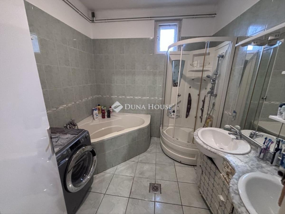 A földszinten modern, tágas fürdőszoba zuhannyal és sarokkáddal