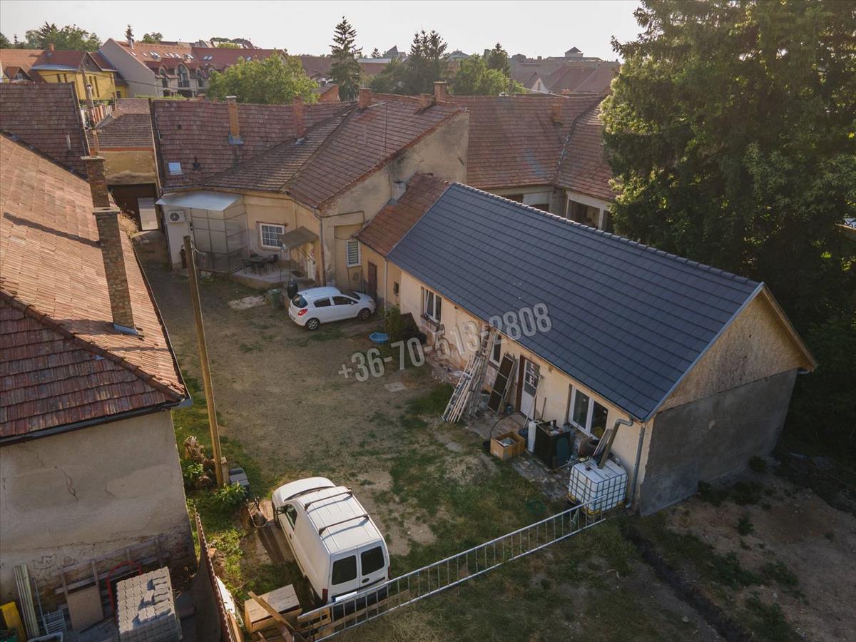 A két ingatlan egy 889m2-es telken helyezkedik el, amin található még egy kisebb házrész, így jelenleg a telek közös használatú, viszont vásárláskor lehetőség van használati megállapodást kötni a Tulajdonosával. a három lakás társasházként működik. Összesen a telek 76%-a tartozik ide. Közművek közül villany, víz és csatorna bekötésre került, gáz a telken belül. Parkolni az udvaron belül több autóval is lehet, a bejáratnál elektromos kapu került beépítésre.