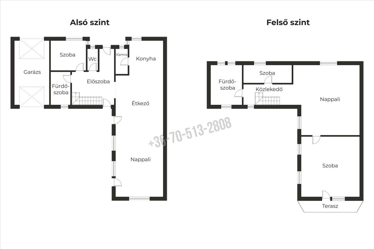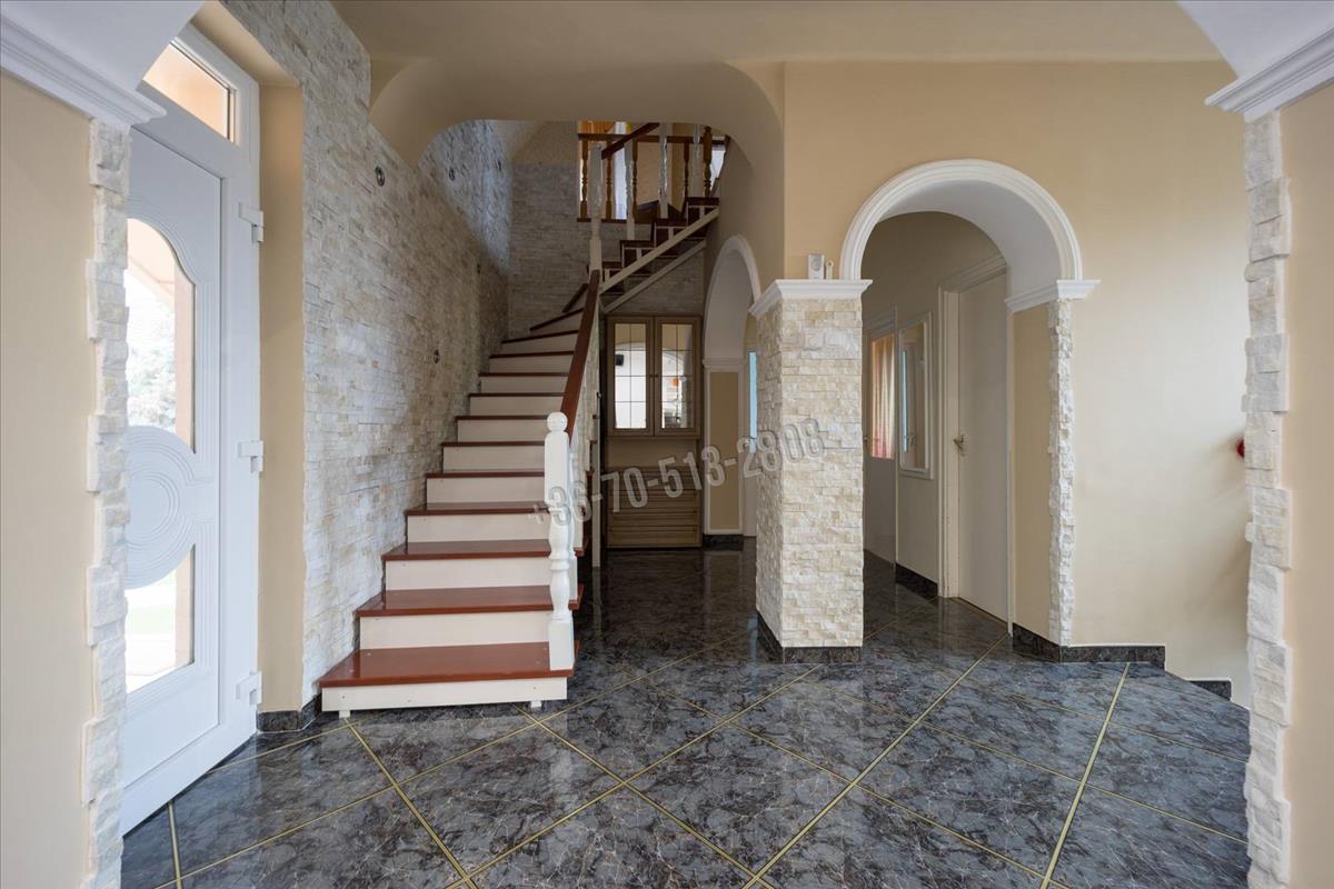 Hasznos alapterülete 210m2, melyben kialakításra került az alsó szinten egy tágas, 70m2-es amerikai konyhás nappali, kamra, fürdőszoba, külön mellékhelyiség, előszoba, valamint egy szoba ami háló, dolgozószoba vagy akár irodaként is funkcionálhat. Az emeleten két szoba, nappali és egy fürdőszoba kapott helyet. Az egyik szobához erkély kapcsolódik. a nyílászárók egy részét műanyagra cserélték. a teljes ház alatt pince található, amely kialakítása által alkalmas lehet vállalkozás üzemeltetésére is. a kazánház mellett külön mellékhelyiség is helyet kapott. a vízrendszer üzemeltethető a fúrt kútról is.