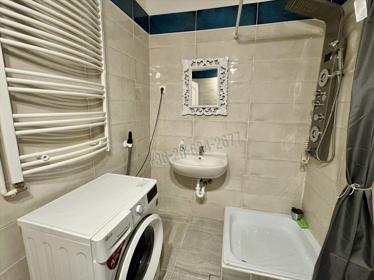 A konyha szintén a minőség jegyében született újjá: teljesen új, méretre gyártott konyhaszekrénnyel, valamint vadonatúj, beépített gépekkel – főzőlap, gázsütő, páraelszívó és hűtőszekrény –, amelyek mind a vételár részét képezik. a fürdőszoba szintén megújult: modern stílusban, igényes burkolatokkal, hőmérséklet-kijelzős, ledes hidromasszázs zuhanypanellel felszerelt, és a kényelmet tovább növeli a szintén újszerű lg mosógép, amely a berendezés része.
