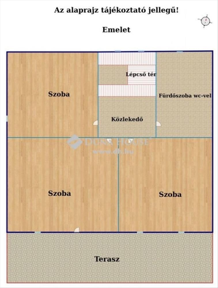 Az emeleten:- három szoba- fürdőszoba wc -vel került kialakításra