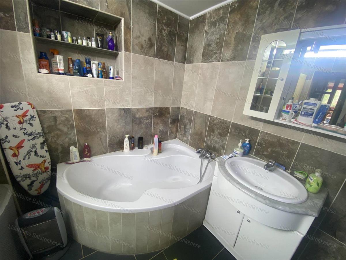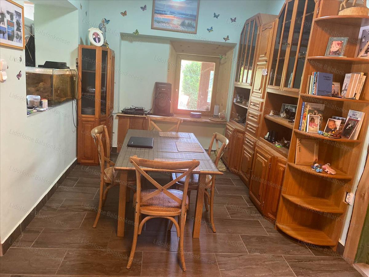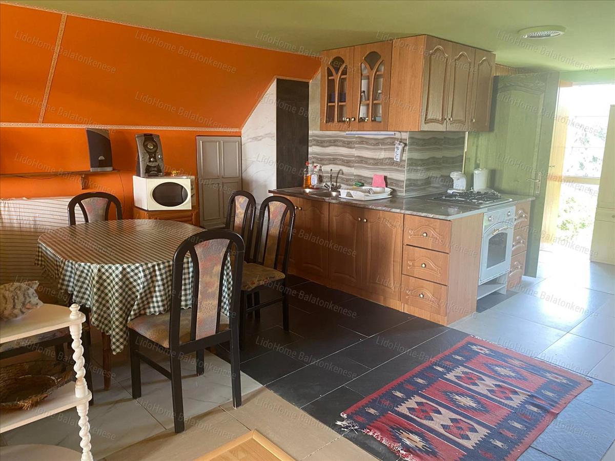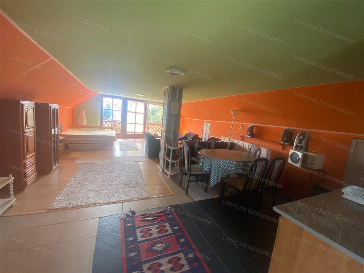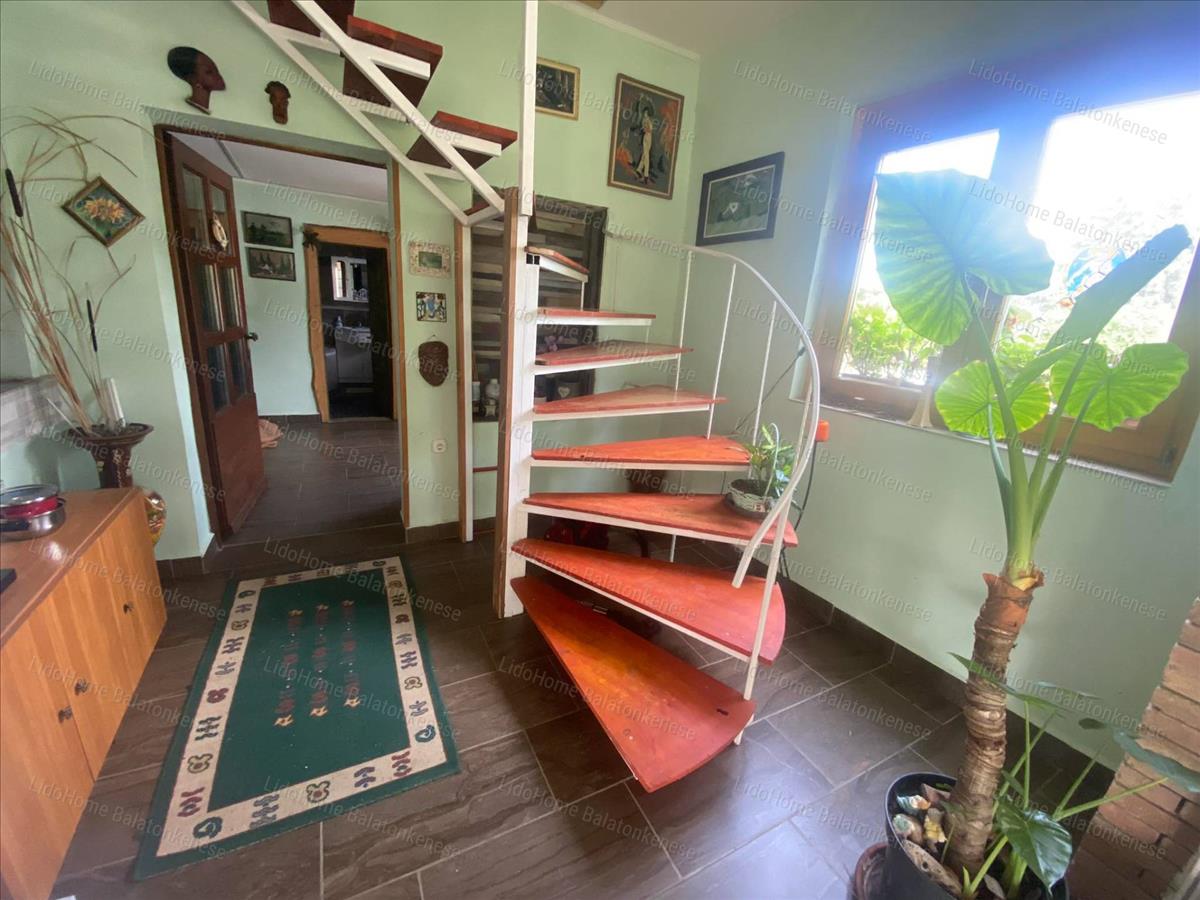 Helyiségek: beépített nagy terasz, nappali-étkező-konyha, két méretes szoba, fürdőszoba, külön wc, spájz. a tetőtérben egy hatalmas szoba konyhasarokkal, egy fürdőszoba és egy balatoni panorámás terasz szolgálja a kényelmünket. a fűtést a nappaliban és a két földszinti szobában található cserépkályhák biztosítják.