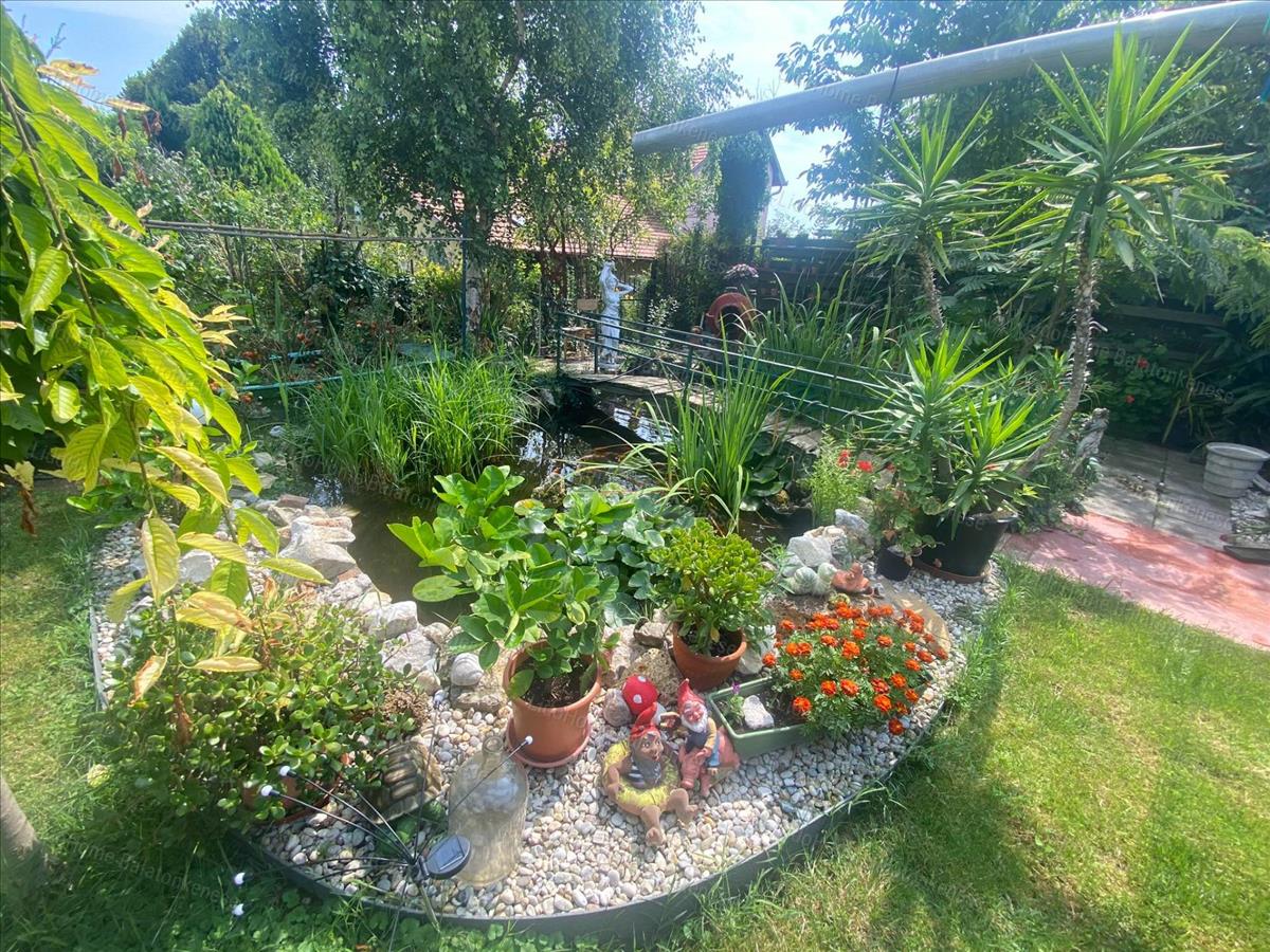 A kert nagyon hangulatos. Legromantikusabb része egy kerti tó, amelyben aranyhalak úszkálnak, tavirózsa virágzik, körülötte egzotikus növények pompáznak.