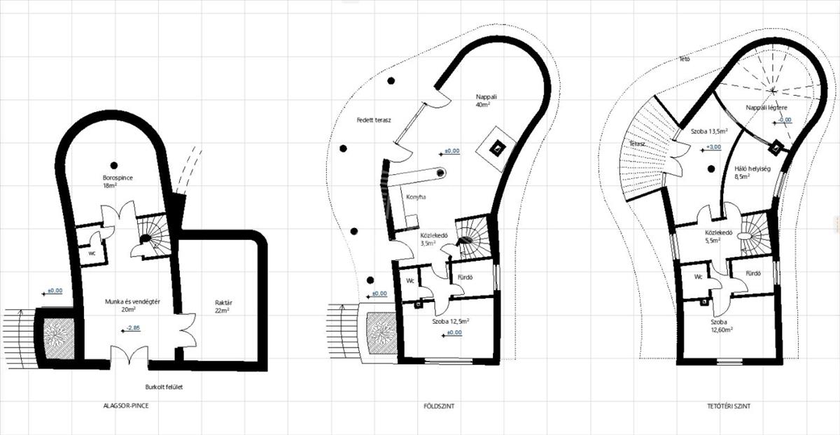 - Az emeleten 3 szoba található, egyikből terasz nyílik a Balatonra, egy másik szobából pedig a lenti nappalira látunk rá. Valamint fürdő és wc, közlekedő kapott még helyet.